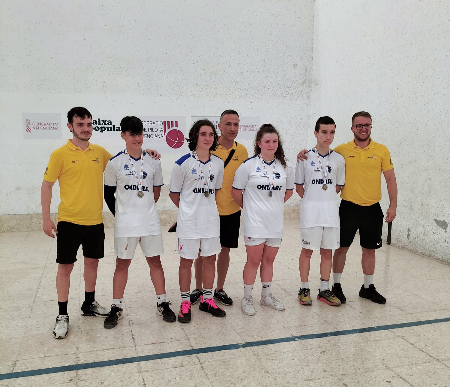 La Escuela Municipal de Pelota de Ondara había conseguido también clasificar tres equipos para la final B, por el tercer lugar autonómico, al haber sido subcampeones provinciales. Los equipos alevín y cadete de Ondara quedaron en un meritorio 4.º lugar autonómico. El alevín, con Joan Garrido, Paco Salort y Alma Contrí, jugó la final por el bronce contra La Llosa de Ranes. El equipo cadete, con Àlex Serra, Andreu Mullor, y Mateu Guitart, jugó contra Alcàntera-Càrcer también bronce. El benjamín A, integrado por Marc Domènech, Unai Forqués, Martí Frasés y Arnau Boluda, jugará la final autonómica por el 3.º lugar autonómico este jueves 9 de junio.