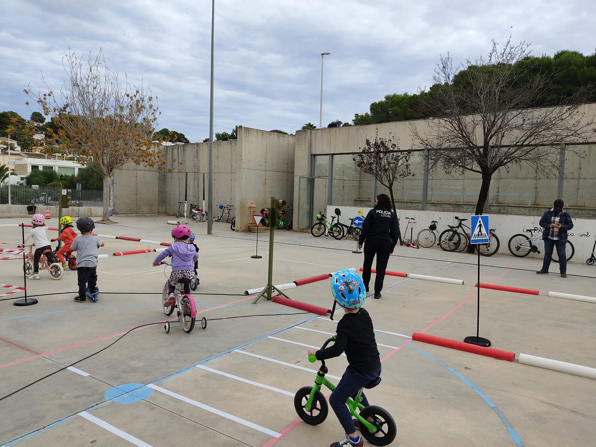 Niños realizando el circuito de educación vial junto a la Policía Local / Ayuntamiento de Teulada