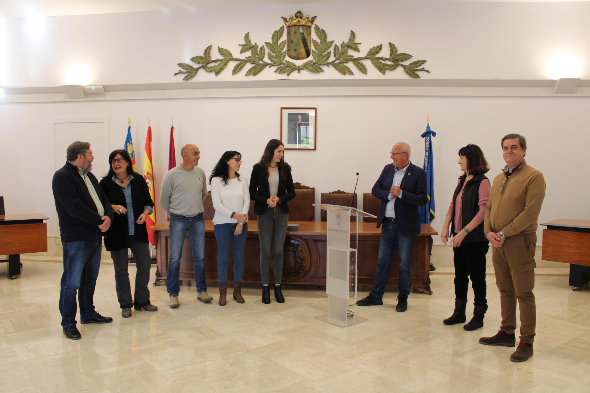 A las once de la mañana, Claudia Lledó, ganadora juvenil de la medalla de oro en la Copa ANCCE de doma clásica con el caballo Cocktail, ha visitado el ayuntamiento. Al acto, además del alcalde, Vicent Grimalt, y otros miembros de la Corporación municipal, han sido sus padres y tíos. Tanto Lledó como su familia han agradecido el reconocimiento al recibir la placa.