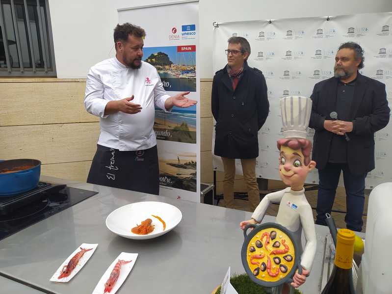 La música la ponían los alumnos del Conservatorio, la gamba y la cocina eran cosa del chef Jordi Andrés, del restaurante El Tresmall de Dénia, y en la pantalla, todo el protagonismo era para el producto: la captura, la cocción y la degustación de la gamba roja. Dos Ciudades Creativas de la UNESCO valencianas, Llíria y Dénia, aliadas para poner de relieve el mejor de sus ámbitos: la música y la gastronomía, respectivamente. El acto formaba parte del festival FestIN que organiza Turismo Valencia y que tiene como particularidad poner en contacto iniciativas gastronómicas y artísticas. En este caso, la ciudad de Llíria planteó a los organizadores incluir esta colaboración con Dénia.