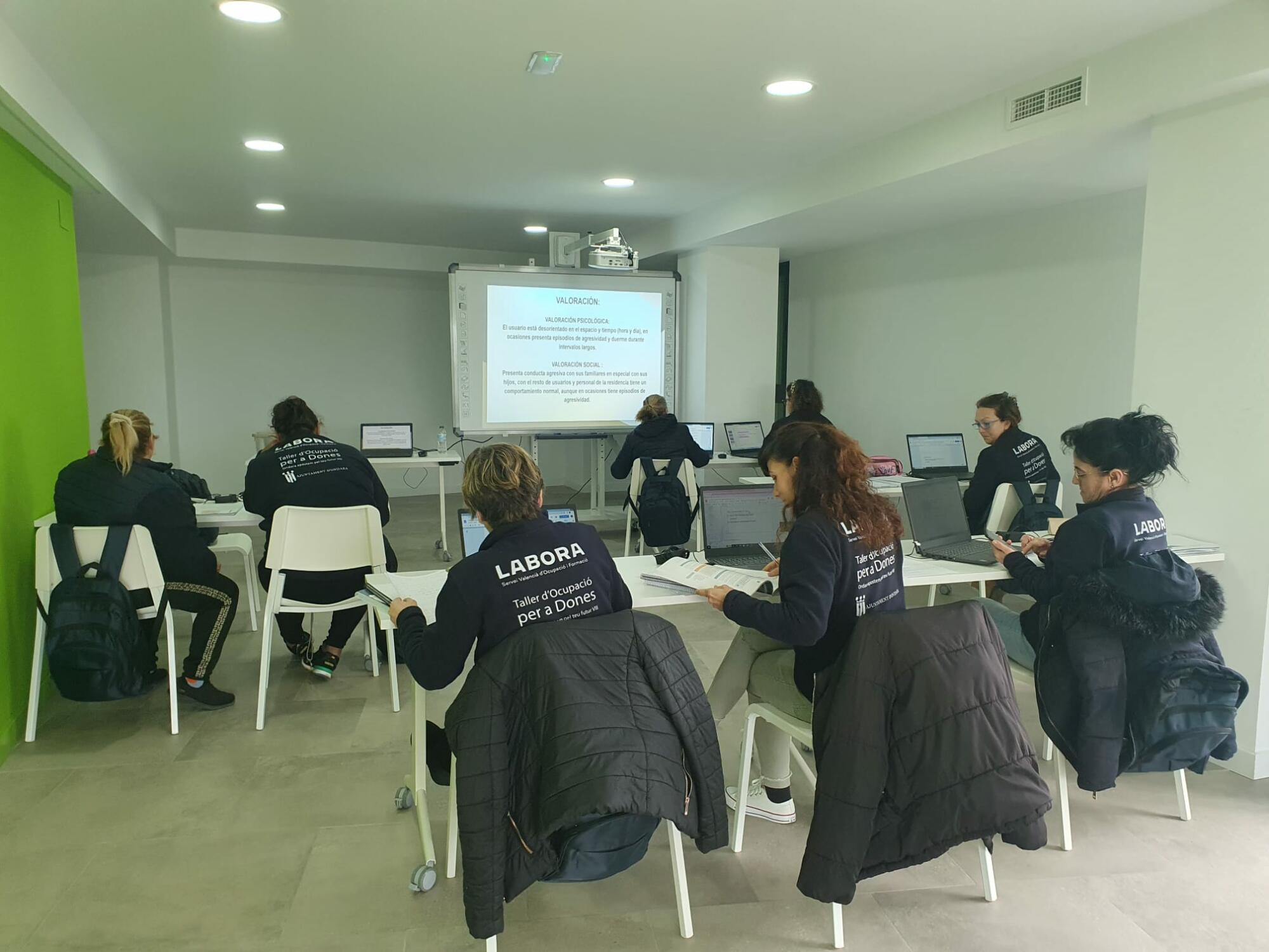 El taller Taller de Ocupación para Mujeres ‘Ondara Apostamos por tu futuro VIII’ en Atención sociosanitaria a personas dependientes en instituciones sociales se está impartiendo en el Espacio Joven de Ondara y en el aula de prácticas del bajo de la Residencia en horario de 7 a 15 horas. Un total de 10 alumnos están cursando este programa, formándose en esta especialidad para tener una profesión en el sector de la atención social, que corresponde a un nivel de certificado de profesionalidad II, a la misma vez que trabajan en el sector. El curso cuenta con 2 formadoras. La directora es Ana Julia Fernández Rojo y la formadora, Marta Morant.
