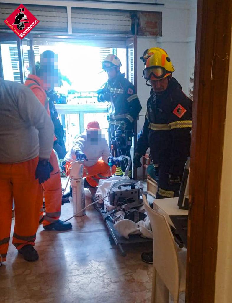 Los bomberos lo han puesto en una camilla para poderlo sacar por la fachada exterior de su vivienda con la autoescalera y dejarlo a disposición de los servicios sanitarios. La Policía local ha colaborado al retirar varias mesas y sillas de un local de la zona al tratarse de un área peatonal con servicio de terrazas. Hasta las 12:43 h no se ha dado por finalizado el auxilio donde ha participado un cabo y seis bomberos del parque de Dénia.