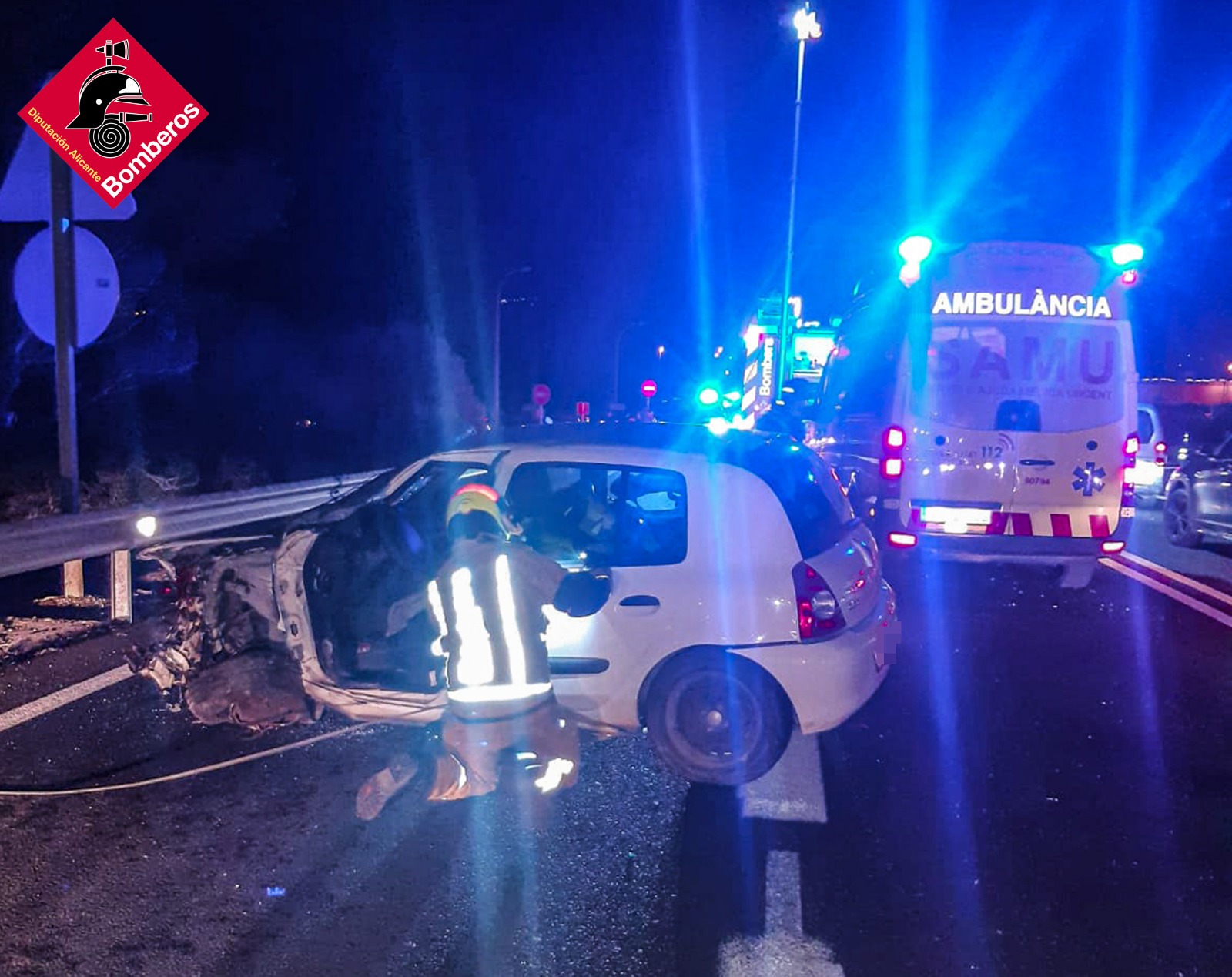 A las 18:26 h los bomberos recibían el aviso de un accidente de tráfico en la N-332 km 196,5 donde se une a la CV-725 de Ondara (cerca del antiguo peaje). El accidente entre un camión y un coche deja un varón de 43 años atrapado dentro del coche y las dotaciones de bomberos allí presentes logran excarcelar al conductor que queda en manos de los servicios sanitarios SAMU con politraumatismos.