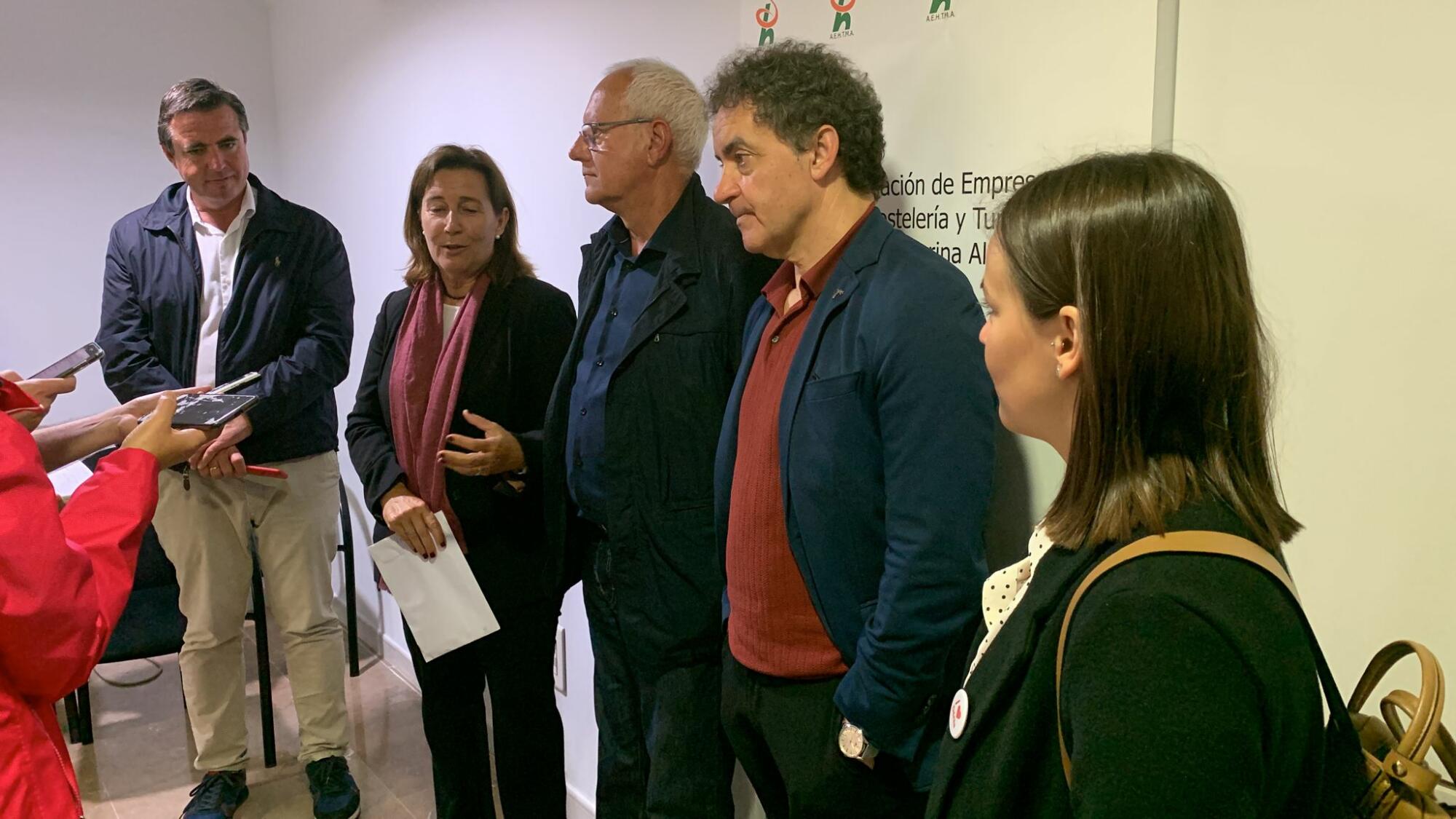 El secretario autonómico de Turismo, Francesc Colomer, y el director general de Turismo, Herick Camposacompañaban ayer a una representación de la candidatura de los Socialistas de Dénia, encabezada por Vicent Grimalt, en una reunión con la directiva y asociados de AEHTMA (Asociación de Empresarios y Hosteleros de Turismo de la Marina Alta).