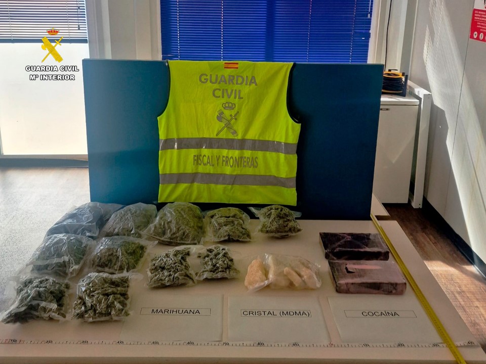 Al abrir los paquetes, que iban envasados al vacío e impregnados de olor para evitar ser descubierto, la Guardia Civil comprobó que contenían 2.190 gramos de cocaína, 1.010 gramos de cristal y 2.330 gramos de marihuana.
