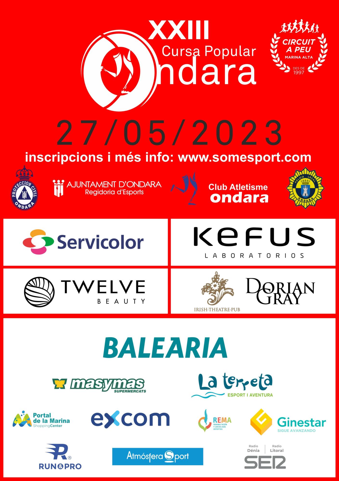 Vuelve la gran fiesta del atletismo local de Ondara, con la 23.ª edición de la Carrera Popular de Ondara (prueba puntuable del Circuit a peu Marina Alta) que se celebrará el sábado 27 de mayo 2023, organizada por el Club de Atletismo de Ondara y la Concejalía de Deportes del Ayuntamiento de Ondara. La XXIII Carrera Popular de Ondara ha sido presentada esta mañana por la Regidora de Deportes, Mar Chesa, y por los representantes del Club de Atletismo Ondara, su presidente Miguel Moreno; Mª José Català y Juan Ginestar.