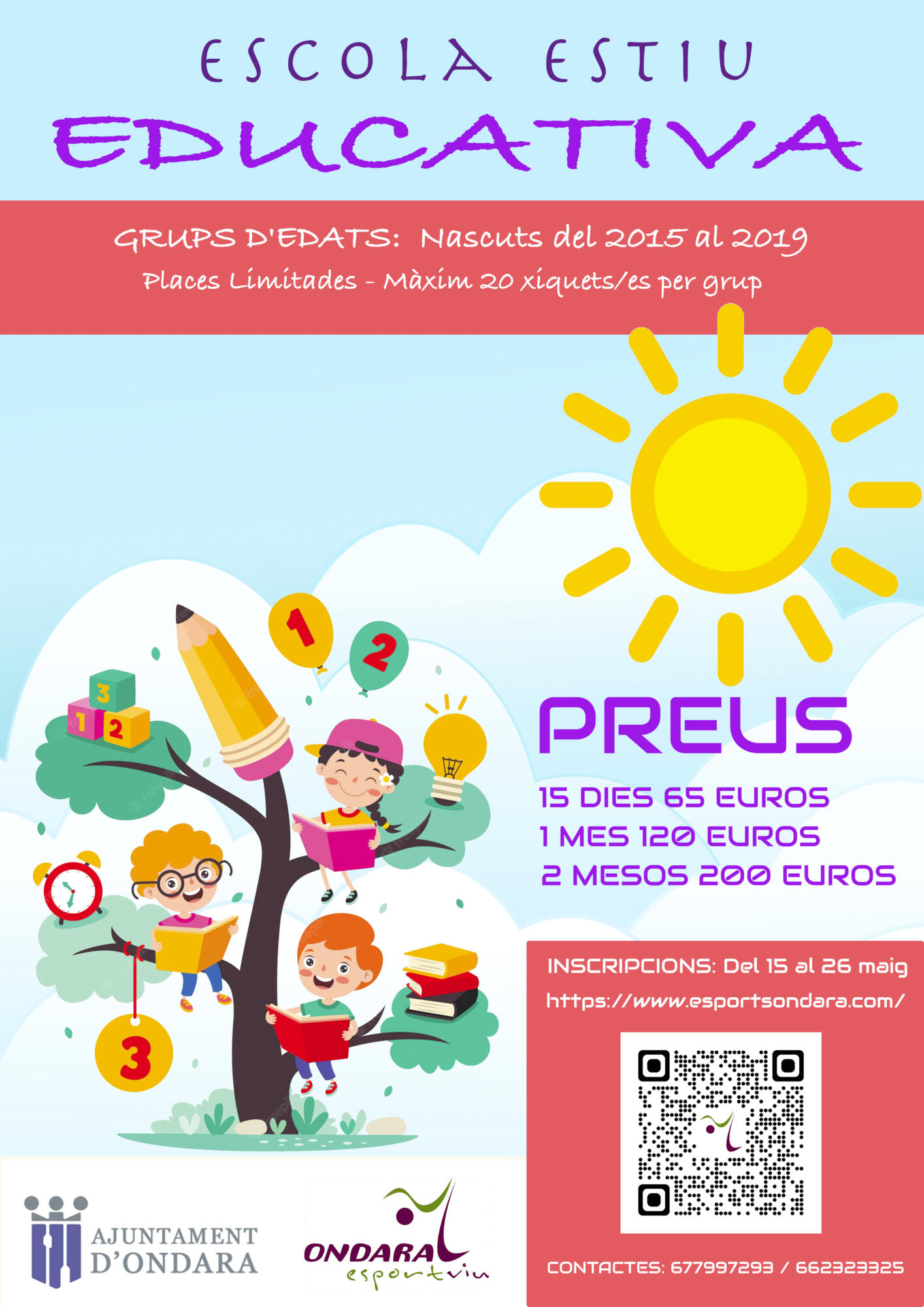 El Ayuntamiento de Ondara, a través de la Concejalía de Educación y Deportes, impartirá la Escuela multideportiva en la piscina y pabellón, y la Escuela Educativa en el Colegio Sanchis Guarner.