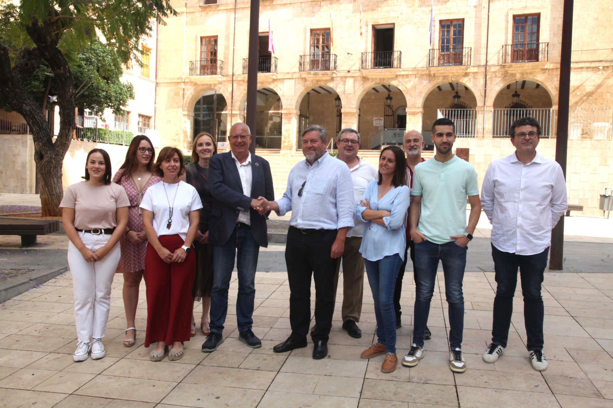 Este es el único punto del acuerdo que han desvelado Grimalt y Carrió esta mañana, en la escenificación que se ha producido de dicho acuerdo de gobernabilidad, en la plaza de la Constitución, en los bajos del edificio consistorial. Sendos líderes políticos han estado acompañados por los miembros de las candidaturas que formarán el nuevo equipo de gobierno de la capital comarcal. Por parte de los Socialistas, junto a Grimalt, Maria Josep Ripoll, Paco Roselló, Sandra Gertrúdix, Javier Scotto, Melani Ivars, Raúl García de la Reina, Marta Gascó y Pepe Doménech (quien ha estado ausente). Y por parte de los valencianistas, además de Carrió, Maria José García y Valentín Alcalá.