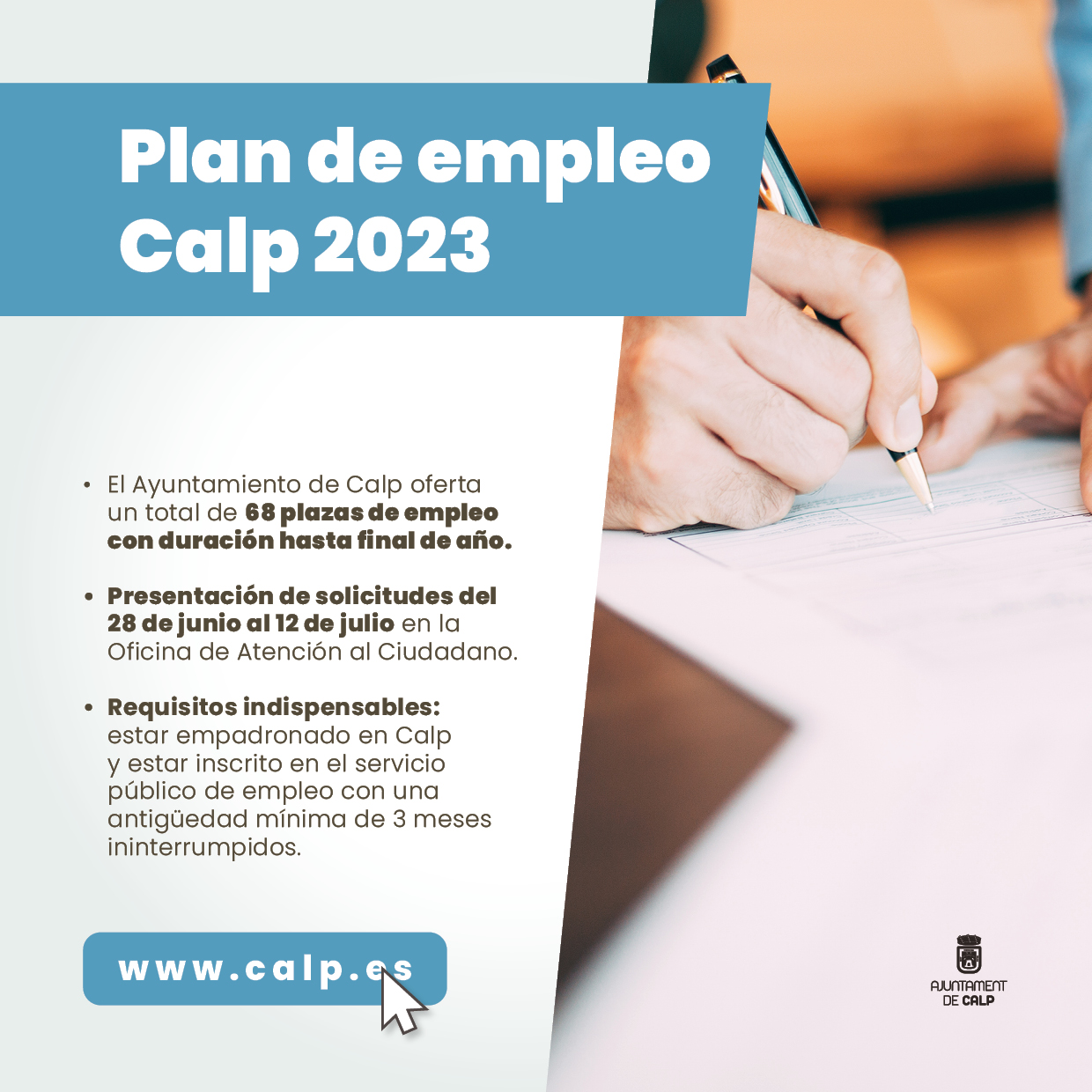 Cartel anunciar del Plan de Empleo / Ayuntamiento de Calp