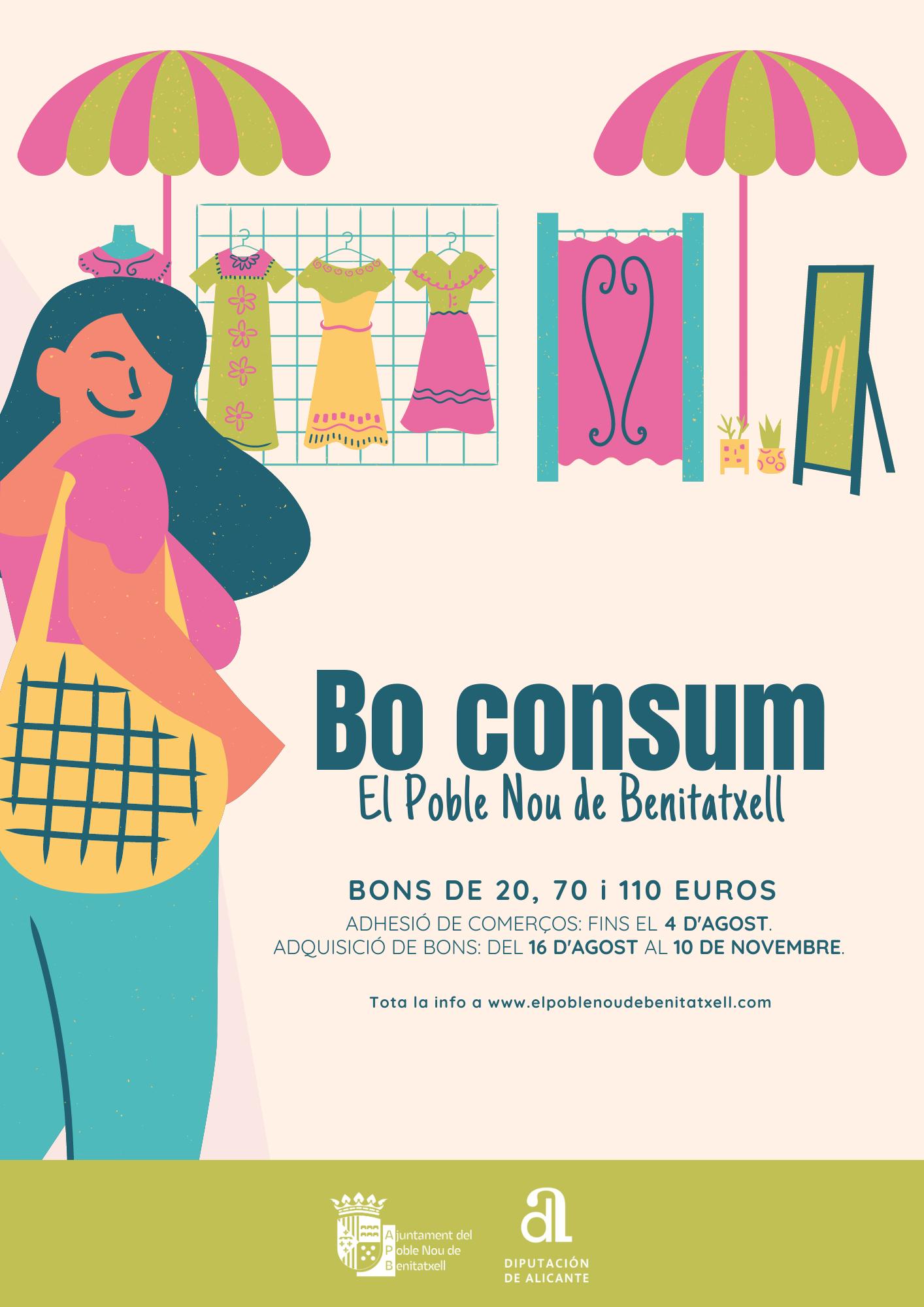 El Ayuntamiento de El Poble Nou de Benitatxell, a través de la Concejalía de Comercio y Promoción Económica, lanza una nueva convocatoria de los bonos consumo, subvencionados por la Diputación de Alicante con 89.540 euros. El objetivo de esta campaña es apoyar al comercio local y multiplicar el valor de las compras de los vecinos y vecinas.