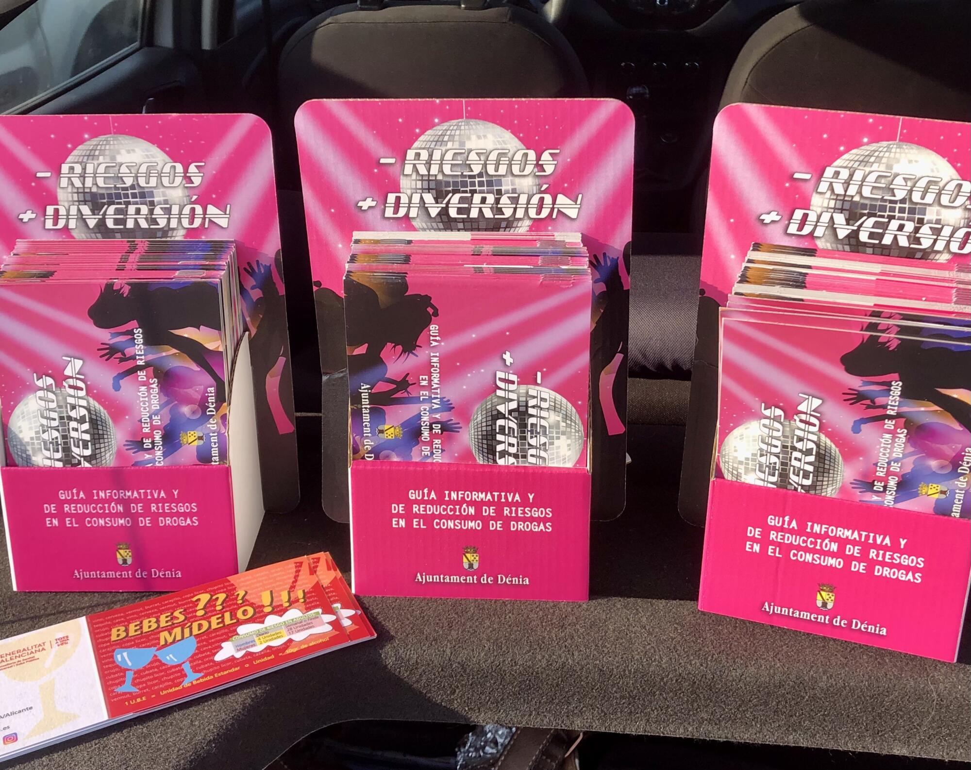 El passat divendres 30 de juny, la UPCCA de l’Ajuntament de Dénia va posar en marxa una nova edició de la campanya “ – RISCOS + DIVERSIÓ”. Aquesta iniciativa consisteix en el repartiment d’una ‘Guia Informativa i de Reducció de Riscos en el Consum de Drogues’ a uns 20 locals d’oci nocturn de la localitat durant tot l’estiu. L’objectiu és oferir informació sobre substàncies d’ús/abús, efectes, riscos i incidir sobre la disminució dels riscos associats al consum en els espais d’oci.