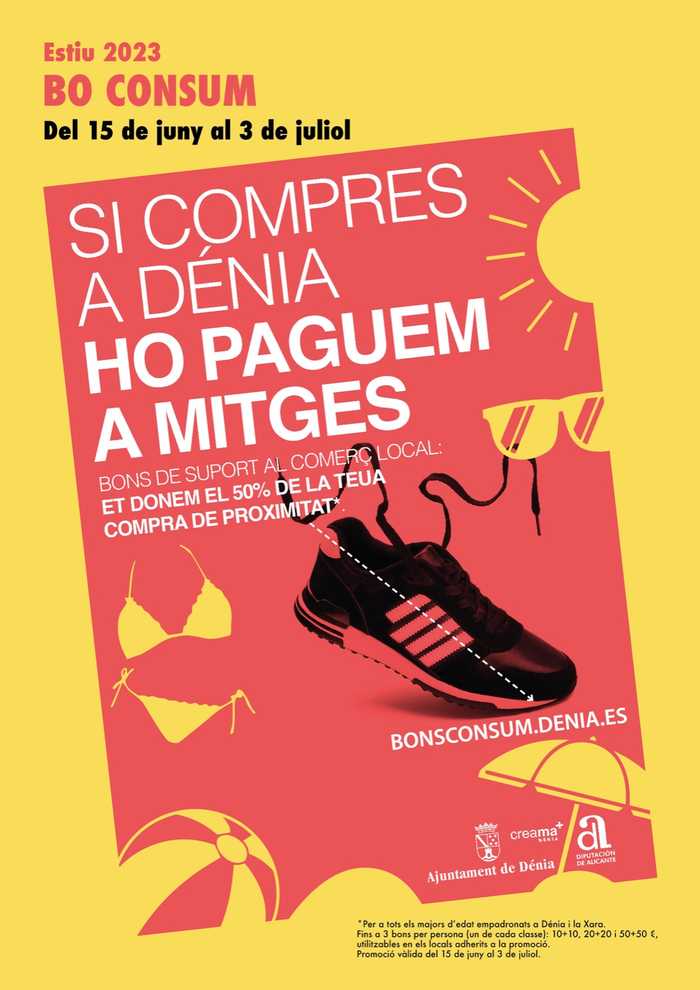 La Regidoria de Comerç, a través de l’Oficina d’Estratègies i Creama, va llançar una nova edició dels bons consum d’estiu del 15 de juny al 3 de juliol; finalitzada la campanya, la despesa total en comerços de Dénia ha estat 703.893 euros.