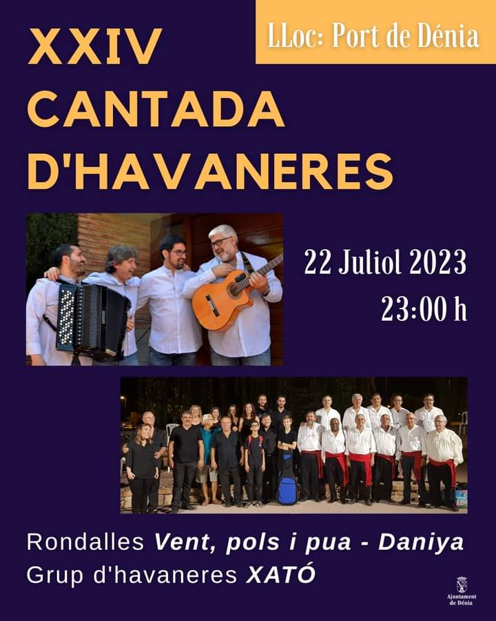 El 22 de juliol se celebrarà la XXIV Cantada d’Havaneres. A les 23 hores, al port de Dénia, es podrà gaudir de les rondalles Vent, pols i púa-Daniya i del grup d’havaneres Xató.