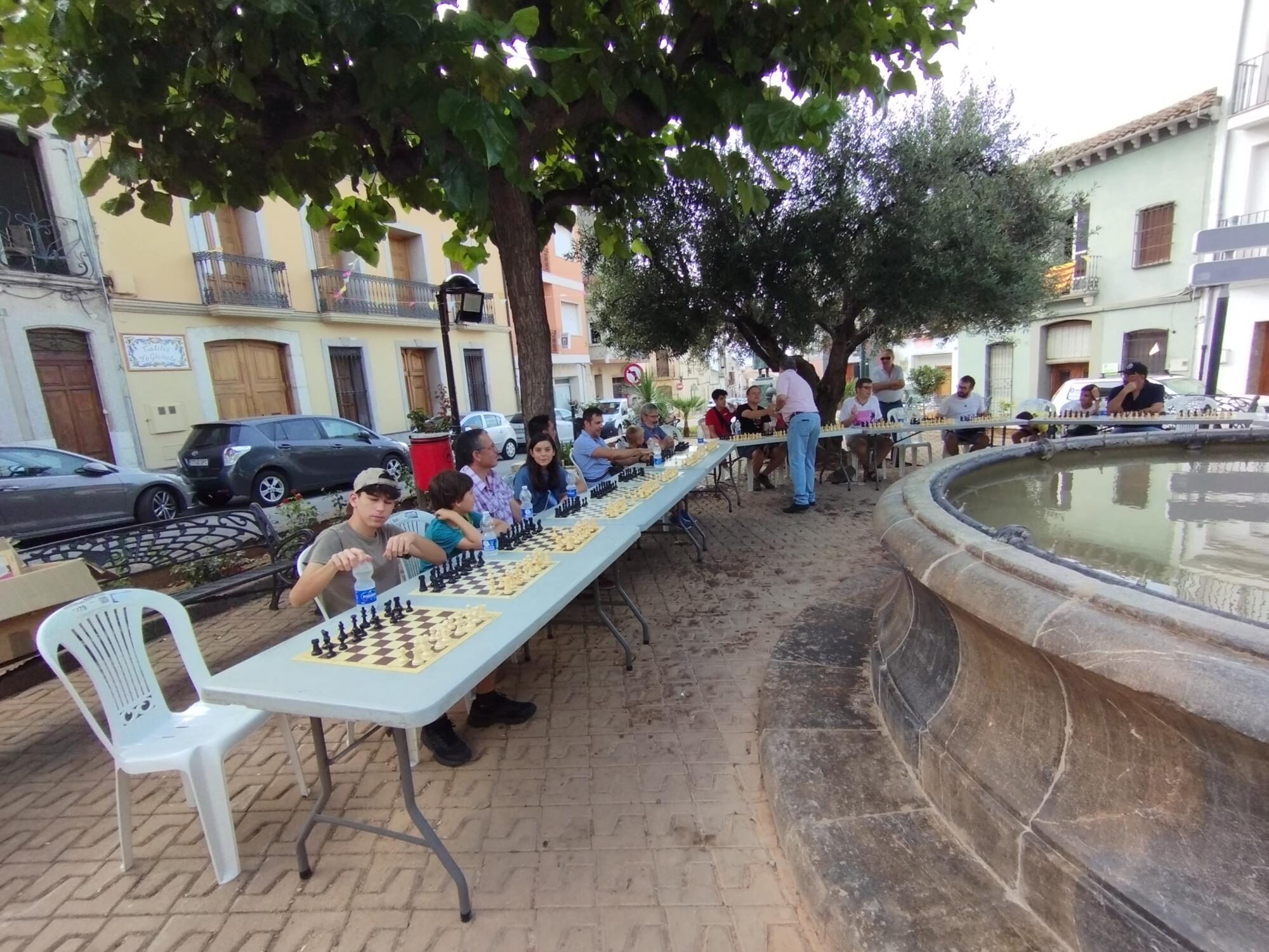 Luís María Campos, maestro internacional y tres veces campeón de España de Ajedrez en categoría veteranos, se ha enfrentado a unas simultáneas con 24 jugadores en la Glorieta de Pedreguer. Una actividad que se enmarca dentro del programa de fiestas de Sant Bonaventura. El maestro ha ganado 22 partidas, ha hecho tablas contra Miguel Ángel García de Calp, y ha encajado una derrota contra Ángel Pérez de Gata.