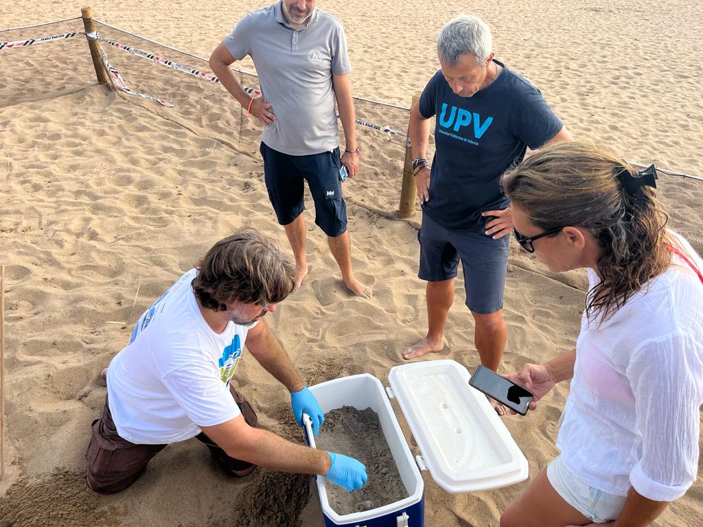 Los huevos han sido trasladados a la playa de les Albaranes,  a la zona ya delimitada, semanas atrás, para un nido anterior.