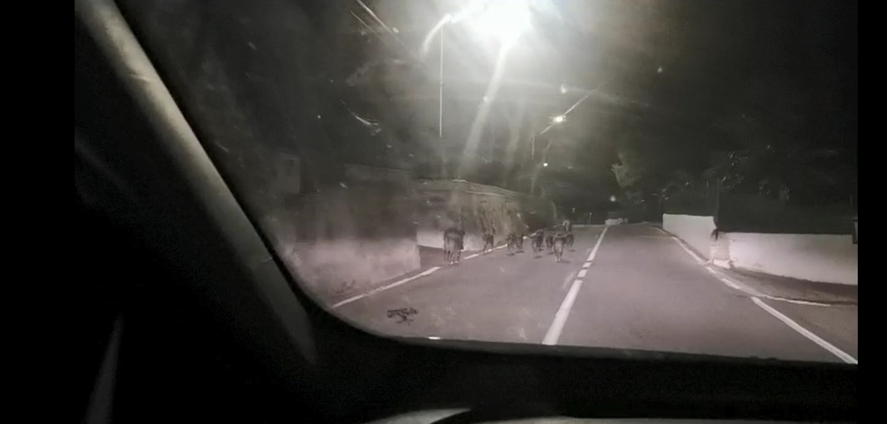 En esta ocasión, la imagen se pudo ver anoche en la carretera de Les Rotes, cuando la manada aprovechó la oscuridad para recorrer parte de este vial. Esta imagen sorprendió a los conductores que circulaban por este vial del litoral sur de la ciudad.