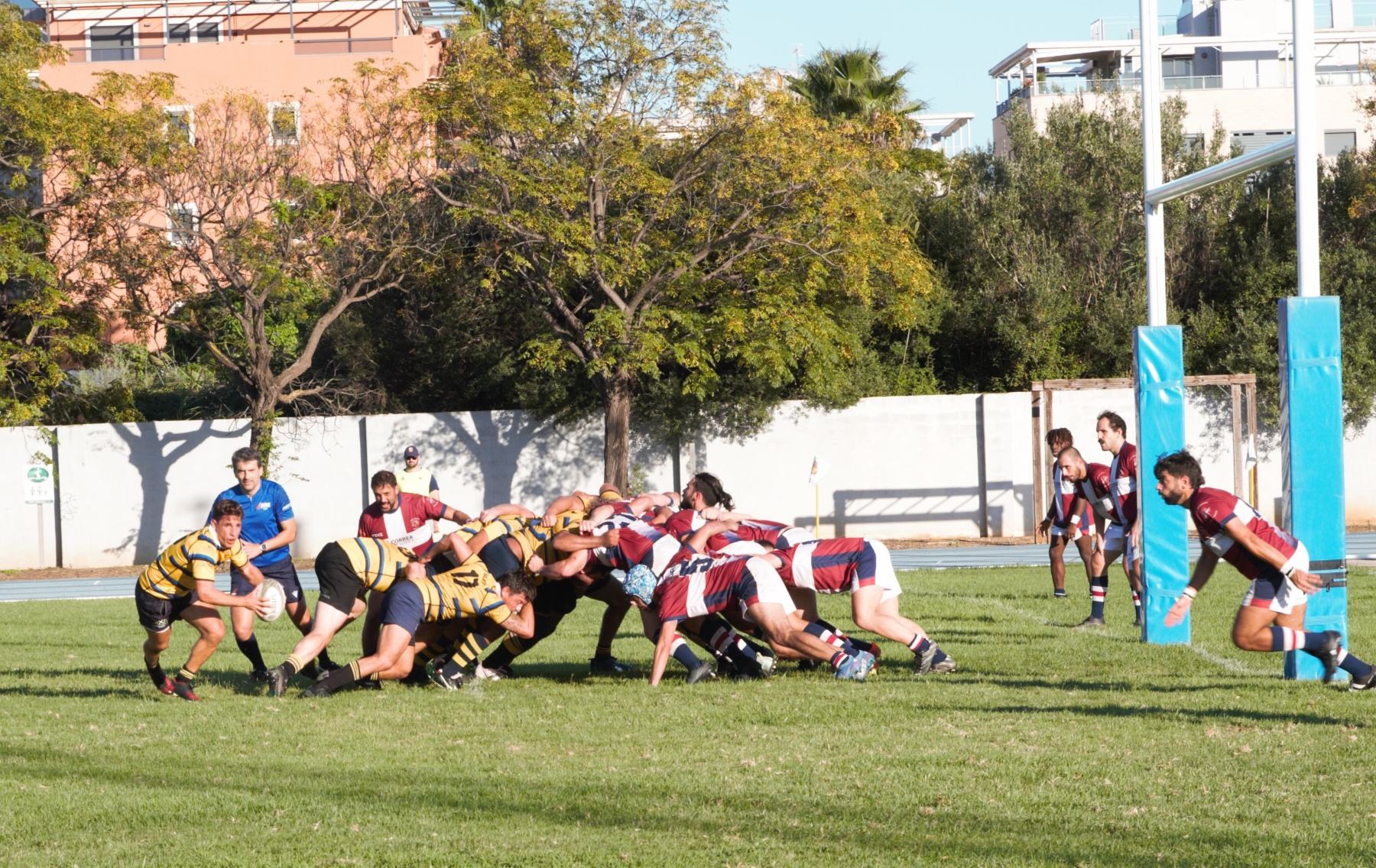 El partido se jugó en el campo de rugby “Tio Luis” del polideportivo de Dénia, con una buena afluencia de público que jaleo todas las acciones de los locales.
