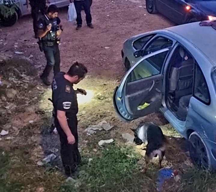 Al operativo se incorporó la unidad canina. El perro policía Kosmo localizó, tanto dentro del vehículo que servía de centro de operaciones como en las inmediaciones, varias bolsitas de las sustancias que habían sido adquiridas minutos antes, que fueron lanzadas al suelo por sus compradores, al percatarse de la presencia policial.