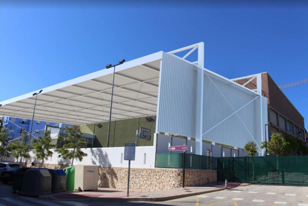 El edificio se encuentra en la zona urbanística destinada a dotacional educativo-cultural, integrando el complejo asociado al CEIP Sant Vicent Ferrer y el pabellón polideportivo municipal cubierto. La solución propuesta se integra estéticamente con el entorno, cumpliendo con los parámetros urbanísticos aplicables según las ordenanzas locales.