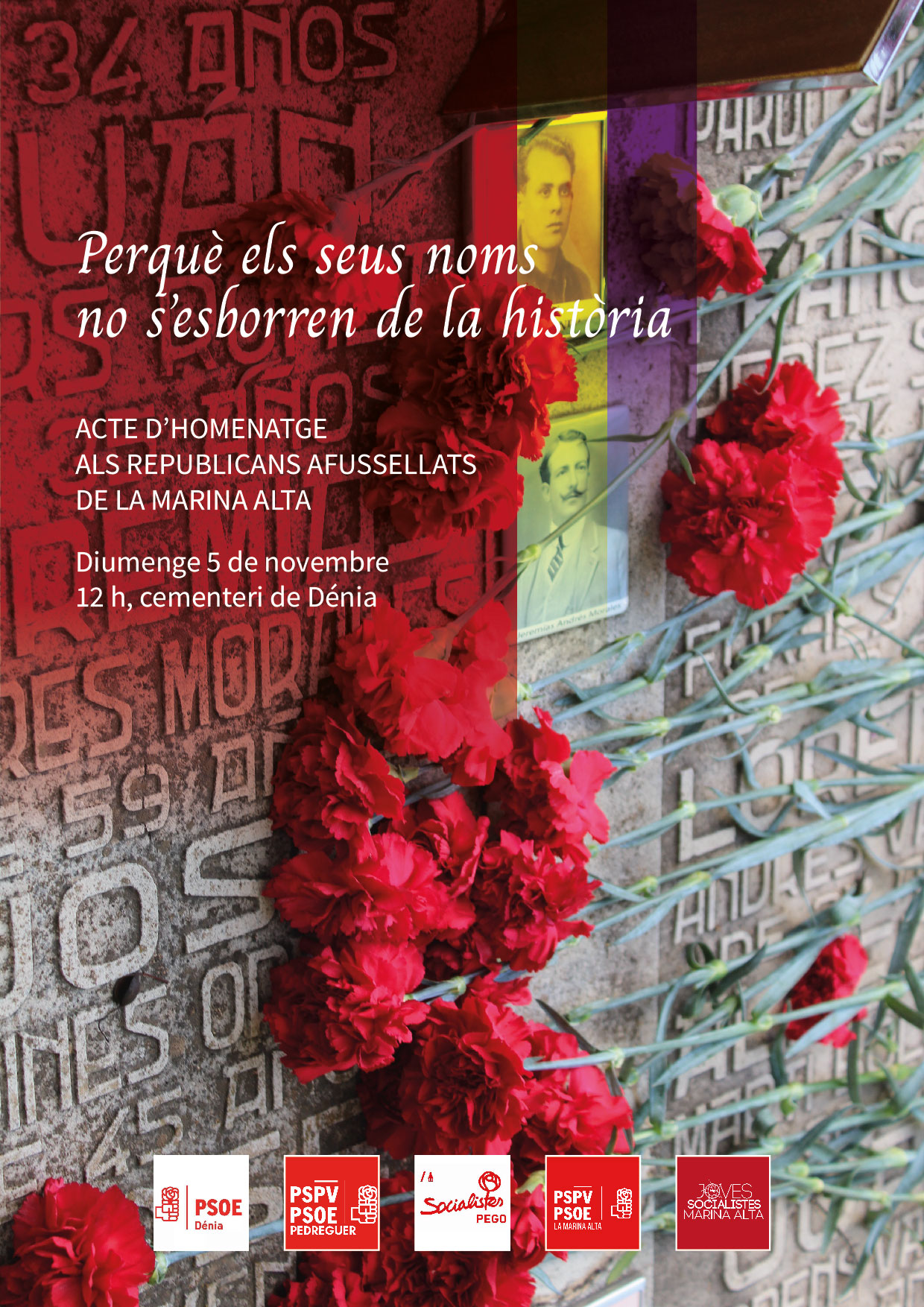 Los socialistas de la comarca vuelven el domingo, 5 de noviembre, al cementerio de Dénia para recordar a los republicanos fusilados por el franquismo. Se trata de un homenaje a las personas asesinadas en el paredón dianense, por sus ideales republicanos, por el régimen represor y dictatorial. El acto tendrá lugar a las 12 h.