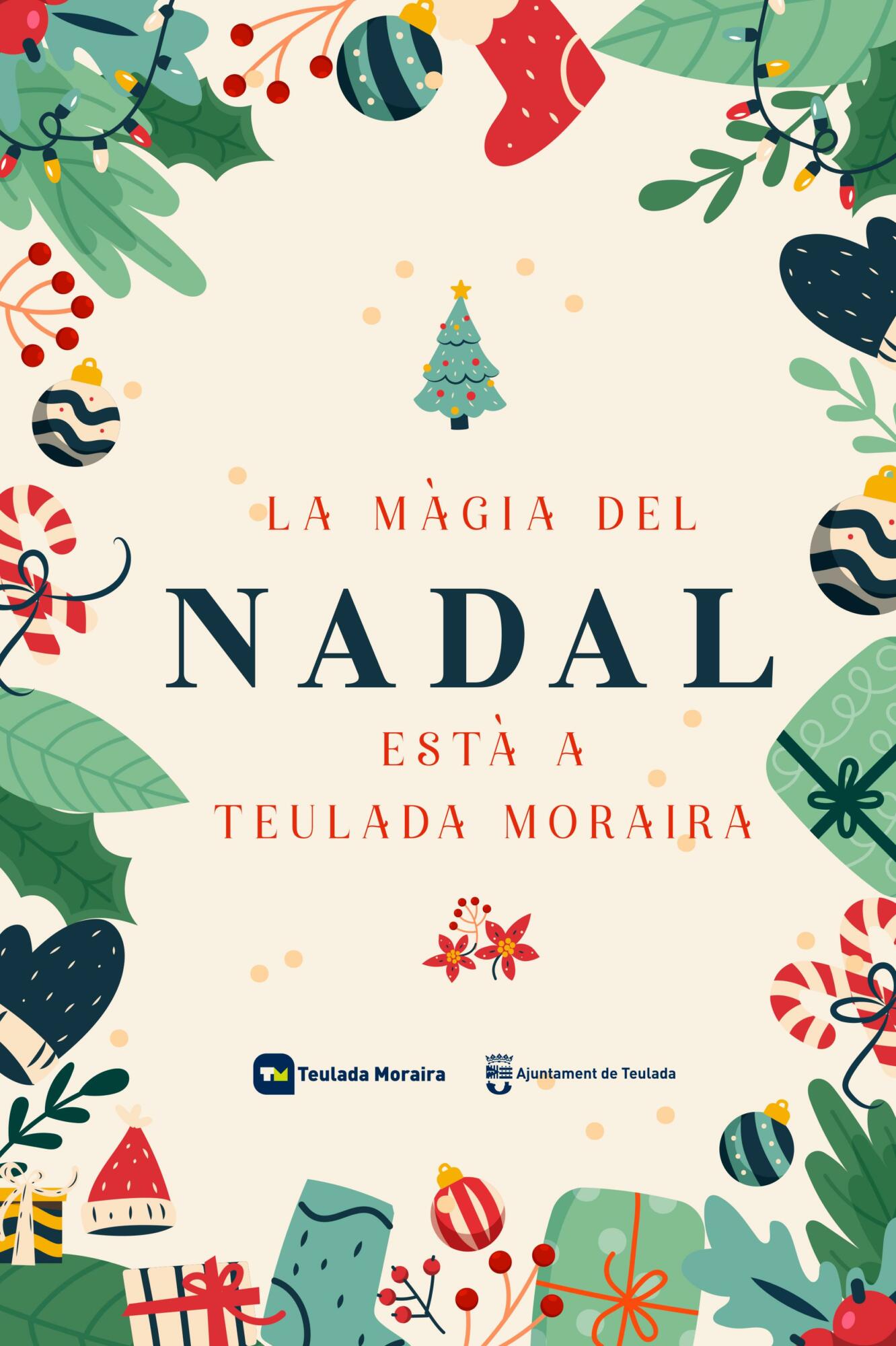 L’Ajuntament de Teulada presenta la esperada programació nadalenca d’enguany, per a la qual, juntament amb diferents associacions locals, s’ha organitzat una gran varietat d’esdeveniments plens de diversió, cultura, música, ¡i molta Nadal per a tota la família!