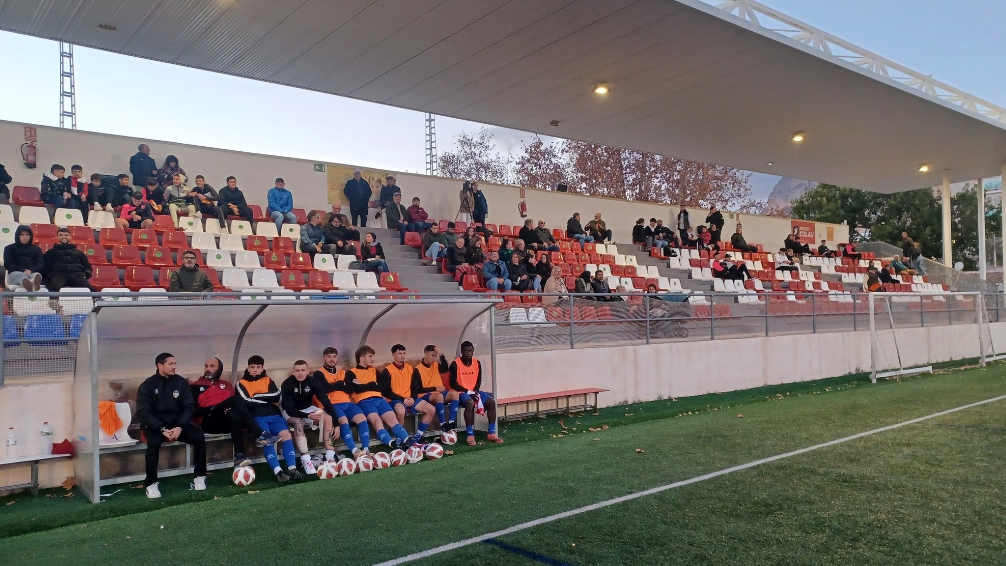 Banquillo del CD Jávea y grada en el choque ante La Nucia B / Fornés