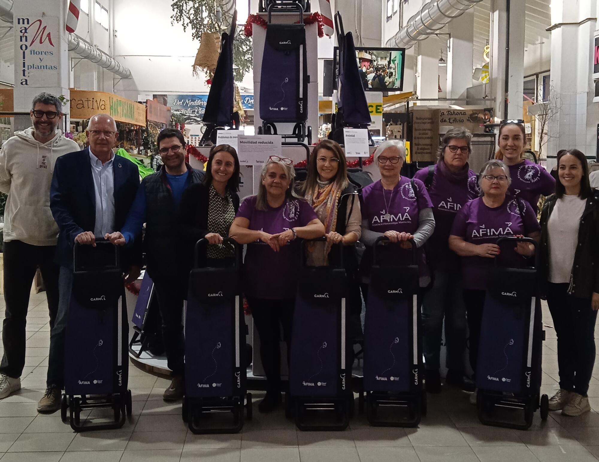 En la presentació de l’arbre solidari de Nadal del Mercat de Dénia, a més d’integrants d’AFIMA, han participat l’alcalde, Vicent Grimalt; la regidora de Mercats, Maria José García; la de Benestar Social, Melani Ivars; Sergio García, representant de Garmol; Alfred Pavía, de Sapristi; i Maite Arnau, presidenta de l’Associació de Venedors del Mercat Municipal.