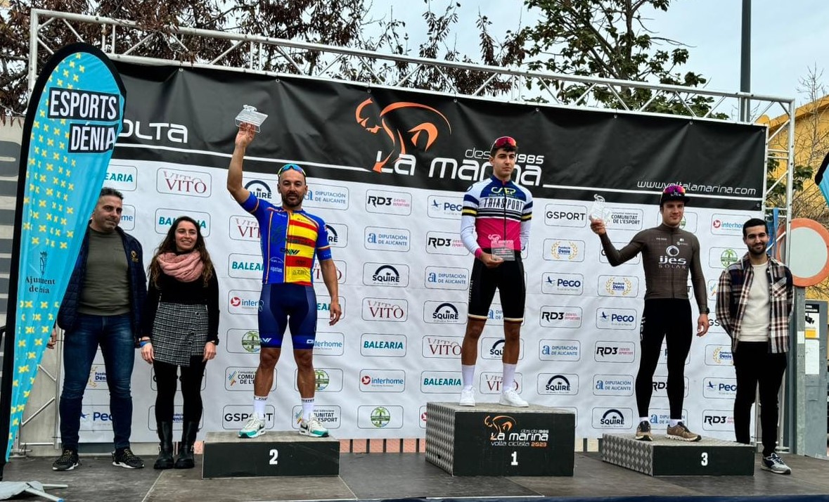 Iván Gomar en lo más alto del podio de la etapa celebrada en Dénia / Javier Zamora
