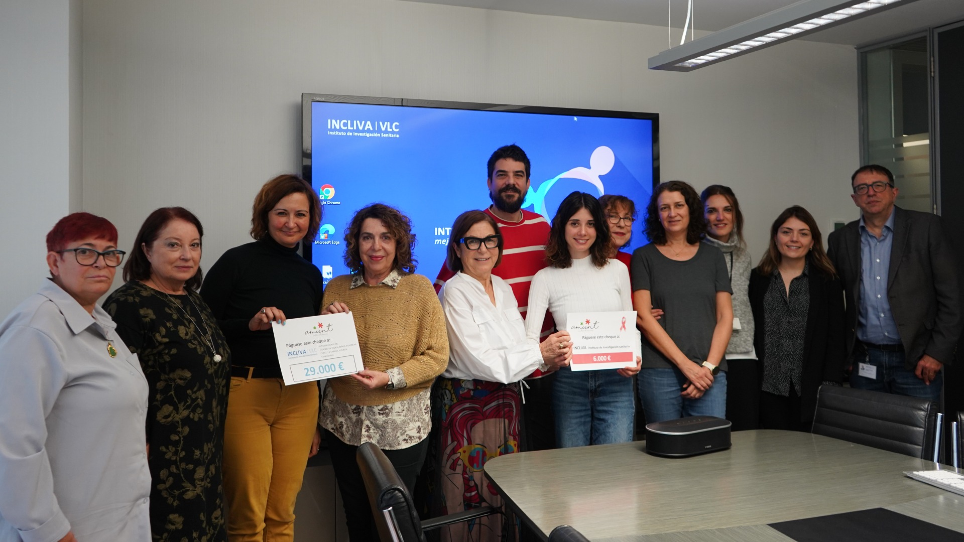 La asociación Amunt contra el cáncer ha entregado a INCLIVA un donativo de 35.000 euros para la lucha contra el cáncer. De la donación total, 6.000 euros serán para la investigación en cáncer de mama, y los otros 29.000 euros restantes irán para las distintas modalidades de cáncer.
