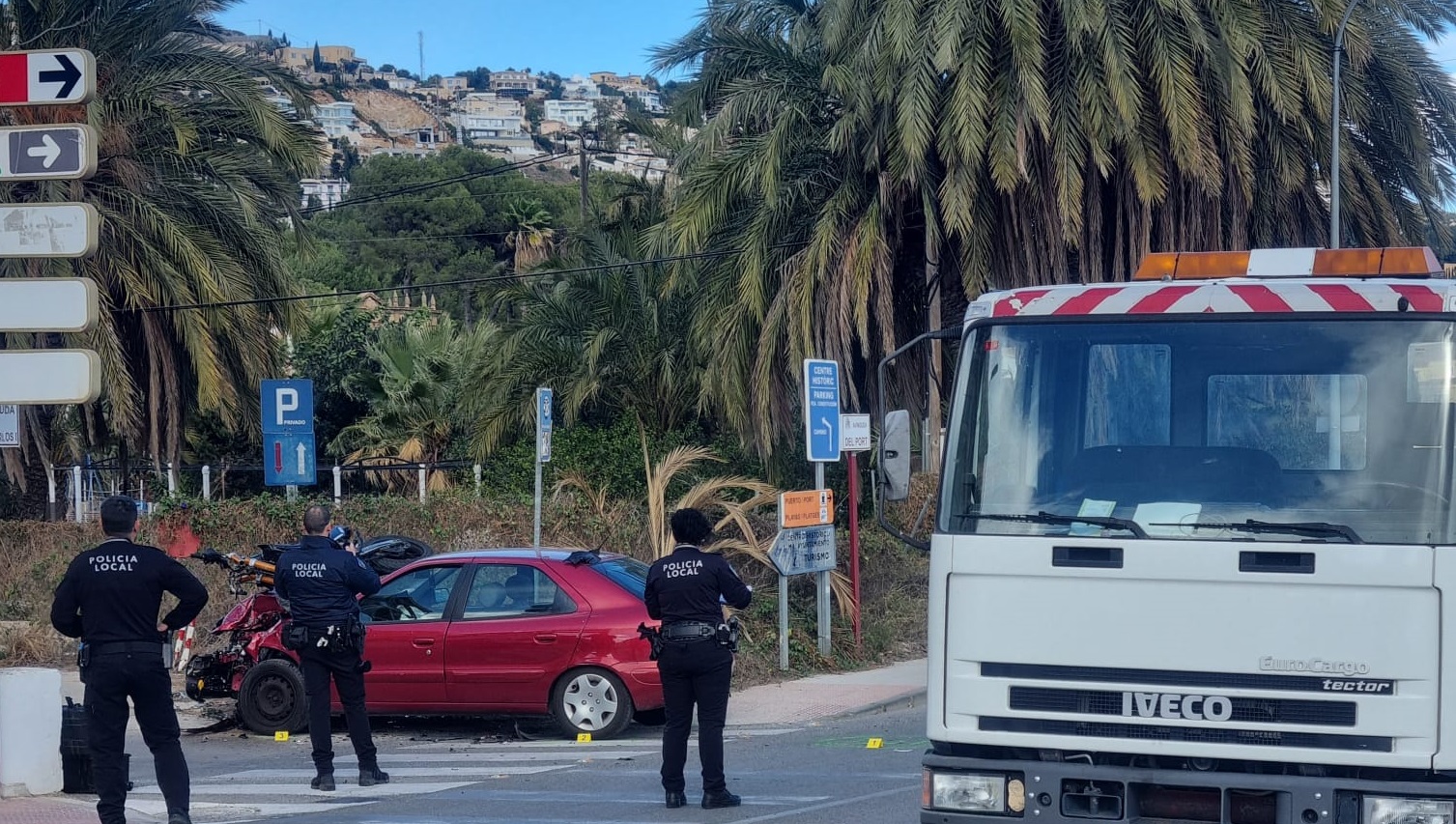 La unidad de la Policía Local de Xàbia especializada en accidentes de tráfico investiga las causas del accidente.