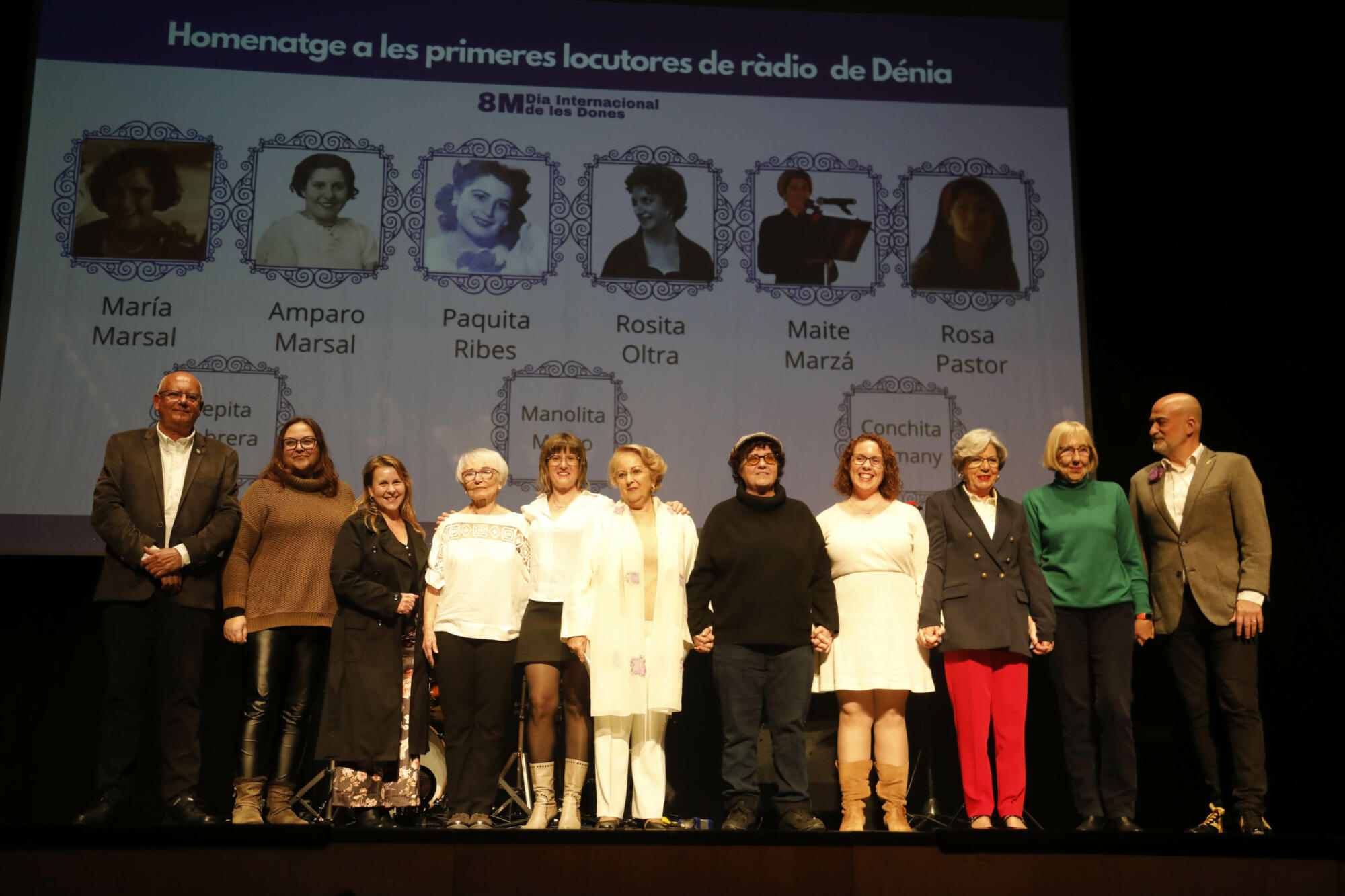 Entre las locutoras que recibieron el reconocimiento, se encontraban Maria Marsal, Amparo Marsal, Pepita Cabrera, Paquita Ribes, Manolita Marco, Rosita Oltra, Conchita Alemán, Rosa Pastor, Maite Marzá, Alicia Salort e Inmaculada Hernández. Todas ellas mujeres pioneras de la radio en Dénia desde la creación de la primera emisora de la ciudad en 1933 hasta principios de la Transición.