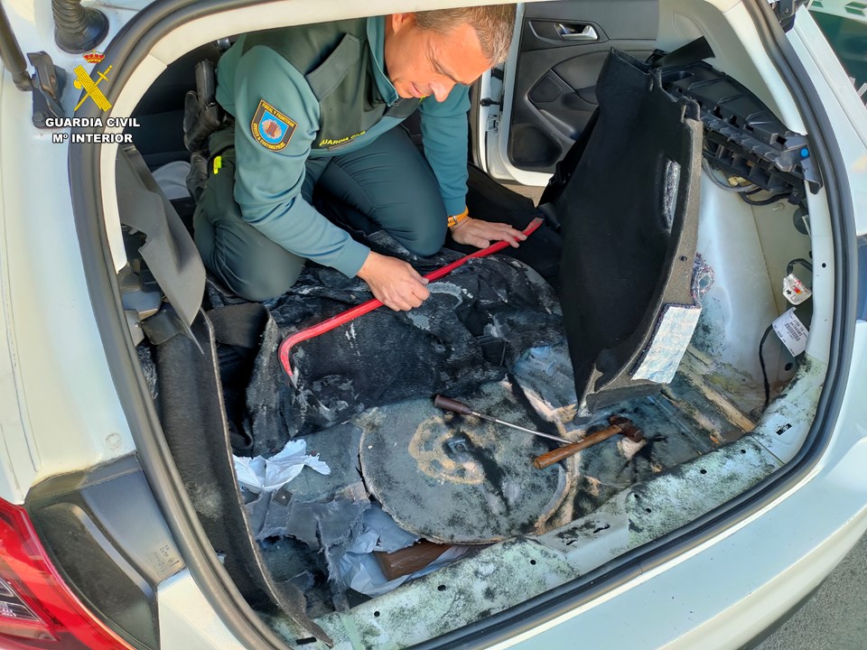 Durant una inspecció de rutina a un vehicle amb destinació a Eivissa, ocupat únicament pel seu conductor, els agents van observar uns certs indicis que van alçar sospites. Este fet va conduir a una inspecció més minuciosa que va revelar una modificació artesanal en el fons del maleter de l’automòbil, creant un espai estanc.