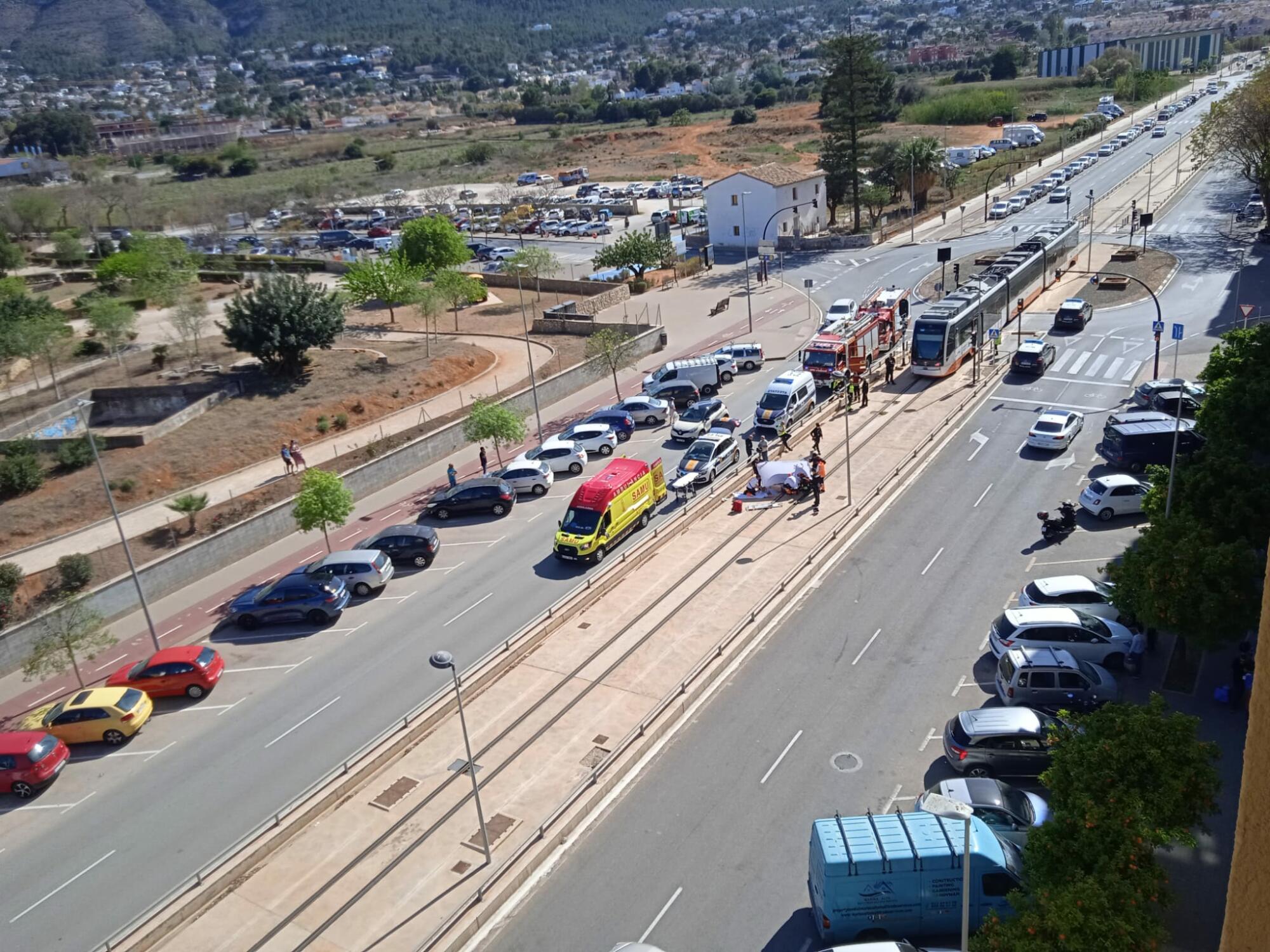 Al voltant de les 17 hores, el TRAM ha atropellat una motocicleta, a l’altura de l’encreuament amb el carrer Diana i el Camí de Sant Joan, a Dénia.