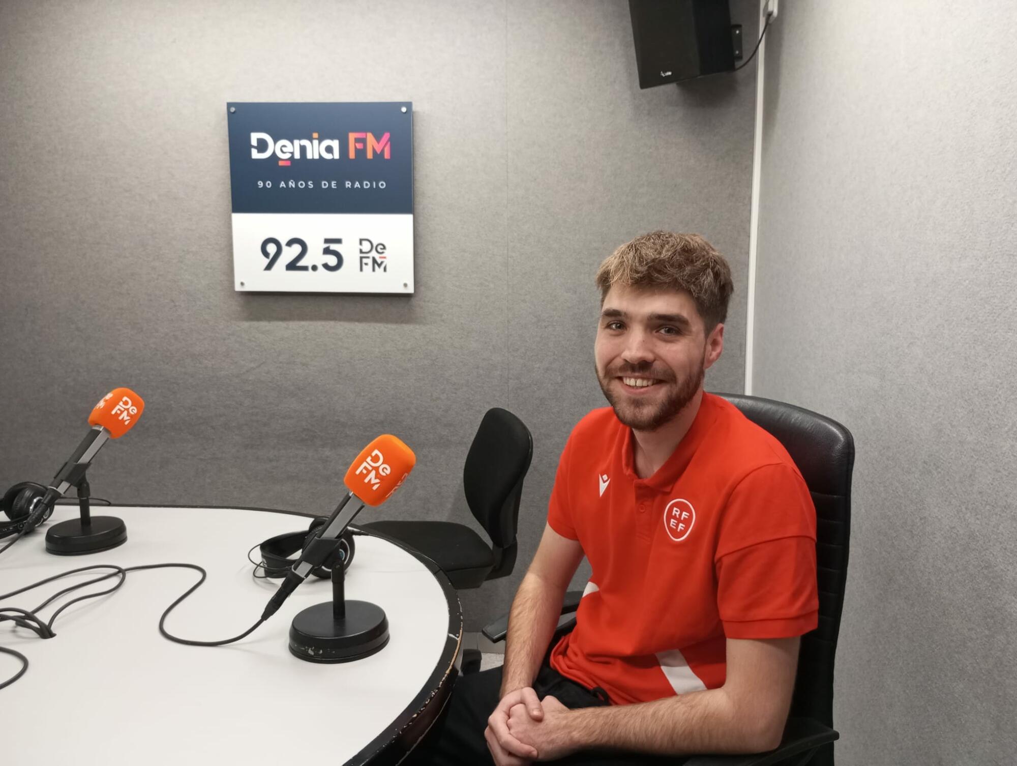 En el matí del dijous 4 d’abril, ha visitat el ‘primer café’, de Dénia FM, el jove àrbitre denier, Hugo Serrano, de 23 anys.