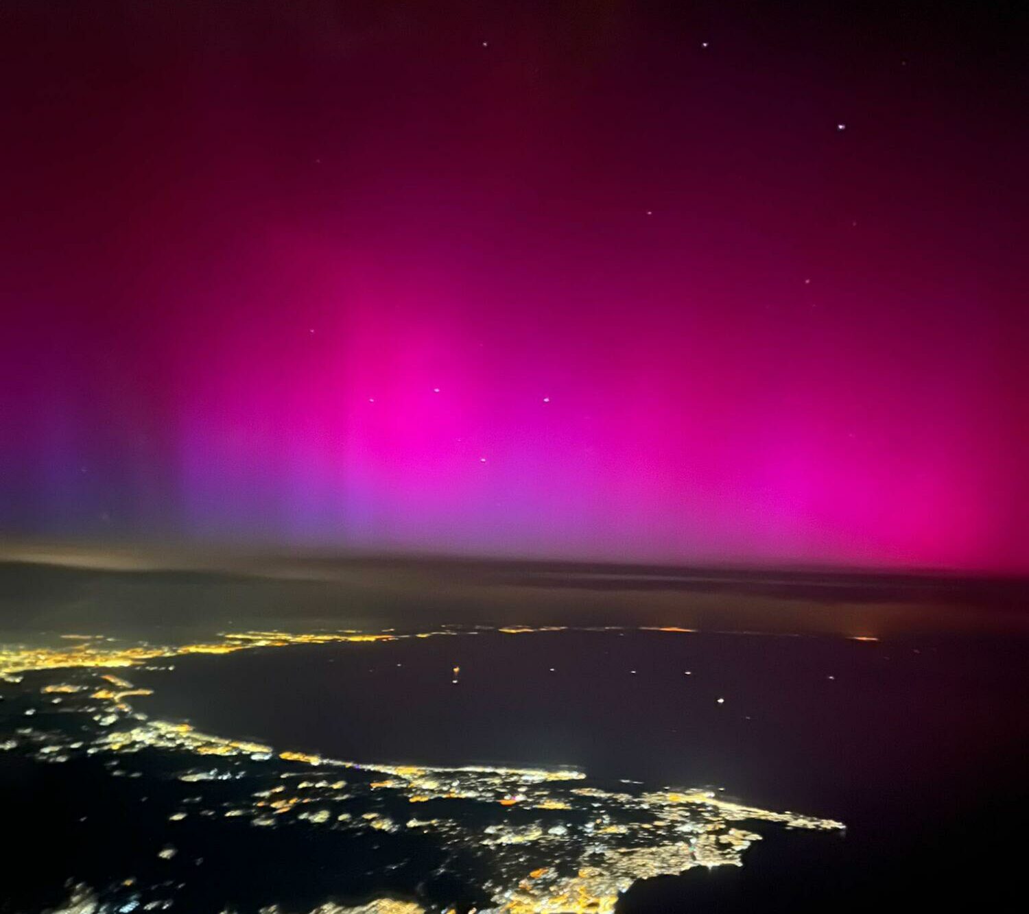Així ho representa esta imatge presa des d’un vol nocturn que sobrevolava la capital comarcal, on s’aprecia tota la seua costa il·luminada i de fons les aurores boreals omplint de color la nit. Altea va ser un altre dels municipis en els quals es va poder observar amb claredat este fenomen astronòmic.