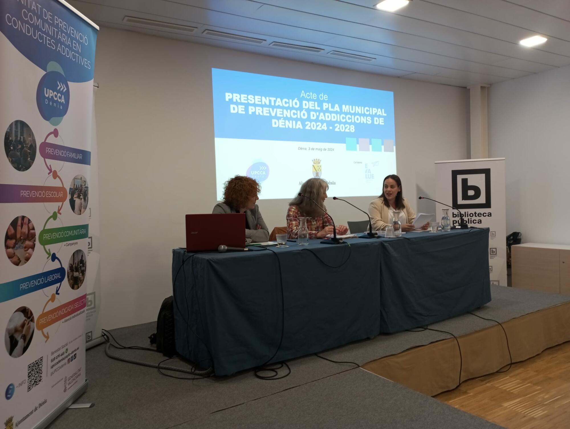 Aquest matí, Melani Ivars, regidora de Benestar Social, Encarna Cáceres, tècnica de la Unitat de Prevenció Comunitària en Conductes Addictives, i Julia Aguilar, tècnica especialitzada en prevenció d’addiccions, han presentat a la Biblioteca de Dénia el nou Pla Municipal de Prevenció d’Addiccions per al període 2024-2028. Aquest pla, que es renova cada quatre anys, busca prevenir les conductes que fomenten el consum de drogues i els hàbits addictius.