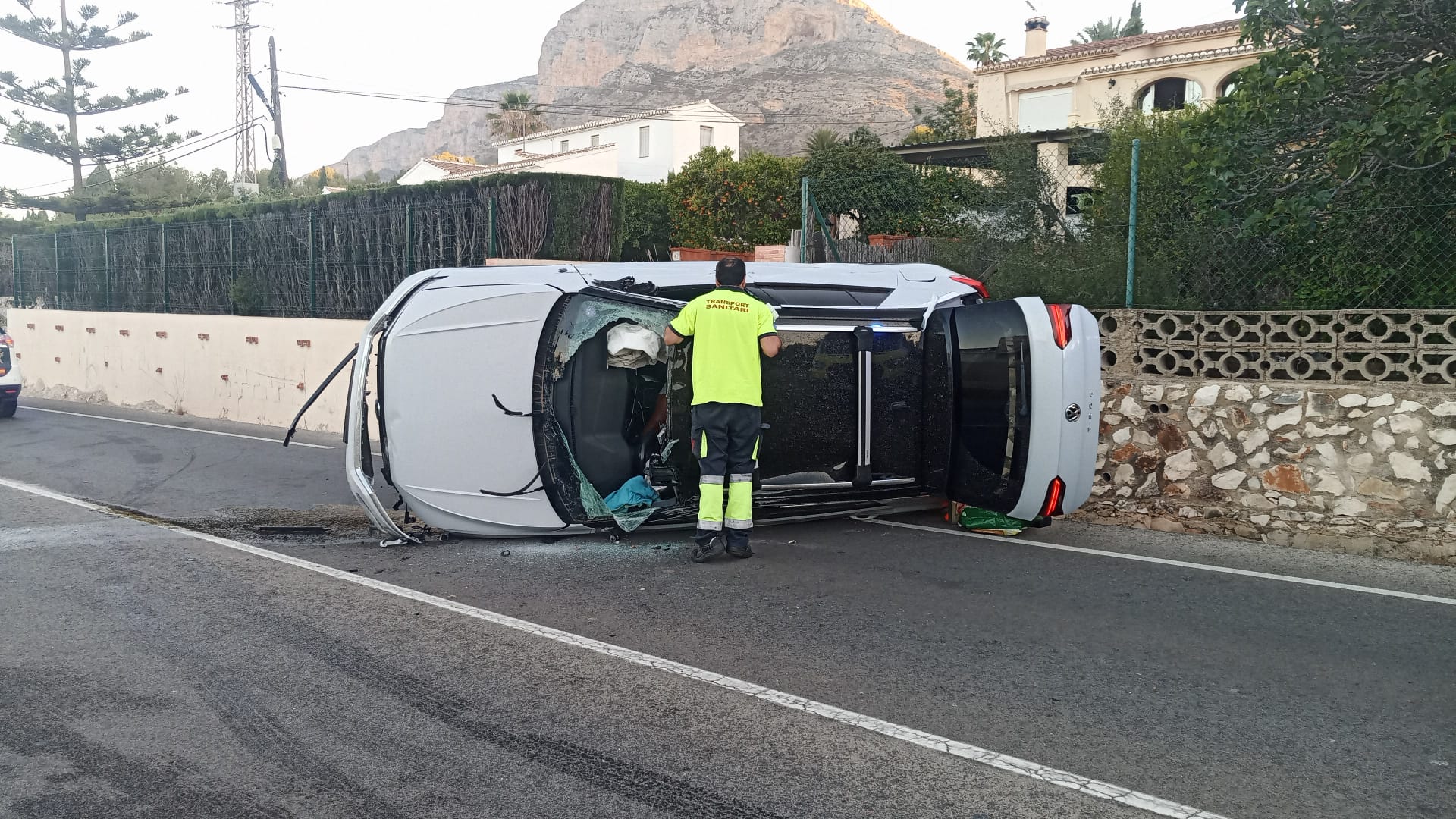 El segon incident s’ha produït a les 6:50 hores a l’altura del Camí Tossals, on un cotxe ha bolcat. A conseqüència de l’accident, els dos ocupants del vehicle han hagut de ser excarcerats pels Bombers del Consorci Provincial. Es tracta de dos ciutadans d’origen holandés, que han sigut traslladats a l’Hospital de Dénia.