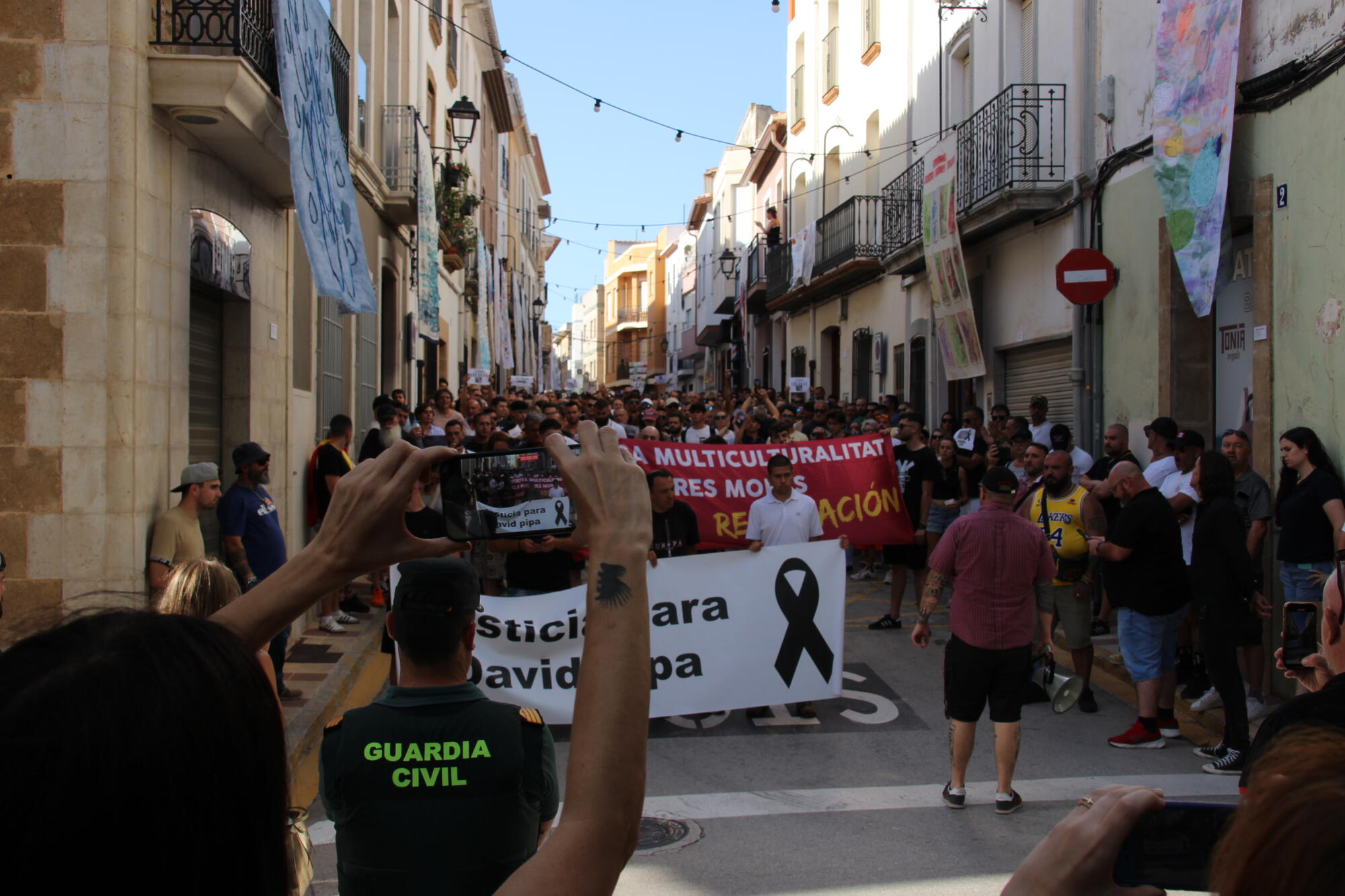 Centenars de persones s’han sumat a la manifestació, organitzada per l’agrupació d’ultradreta Revuelta, als carrers de Gata de Gorgos arran del assassinat de David Lledó que va tindre lloc la setmana passada. A les 18.30 hores d’este diumenge, la plaça Espanya va veure l’inici de la marxa que passaria per les portes de l’ajuntament, la mesquita local i l’entrada del poble.