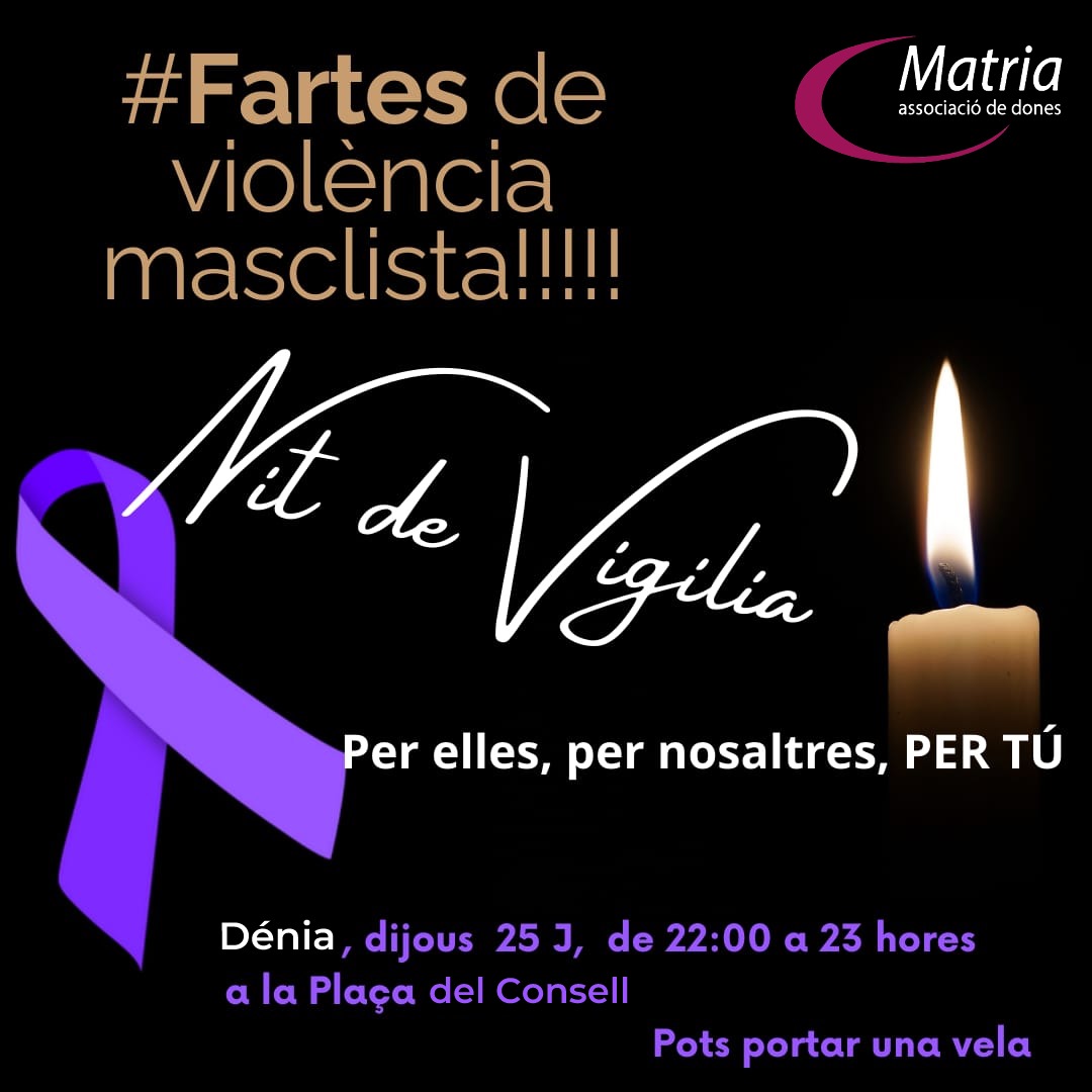 A Dénia, Matria Associació de Dones convoca a la ciutadania, en la plaça del Consell, entre les 22 i les 23 hores. Es convida als participants a portar espelmes.