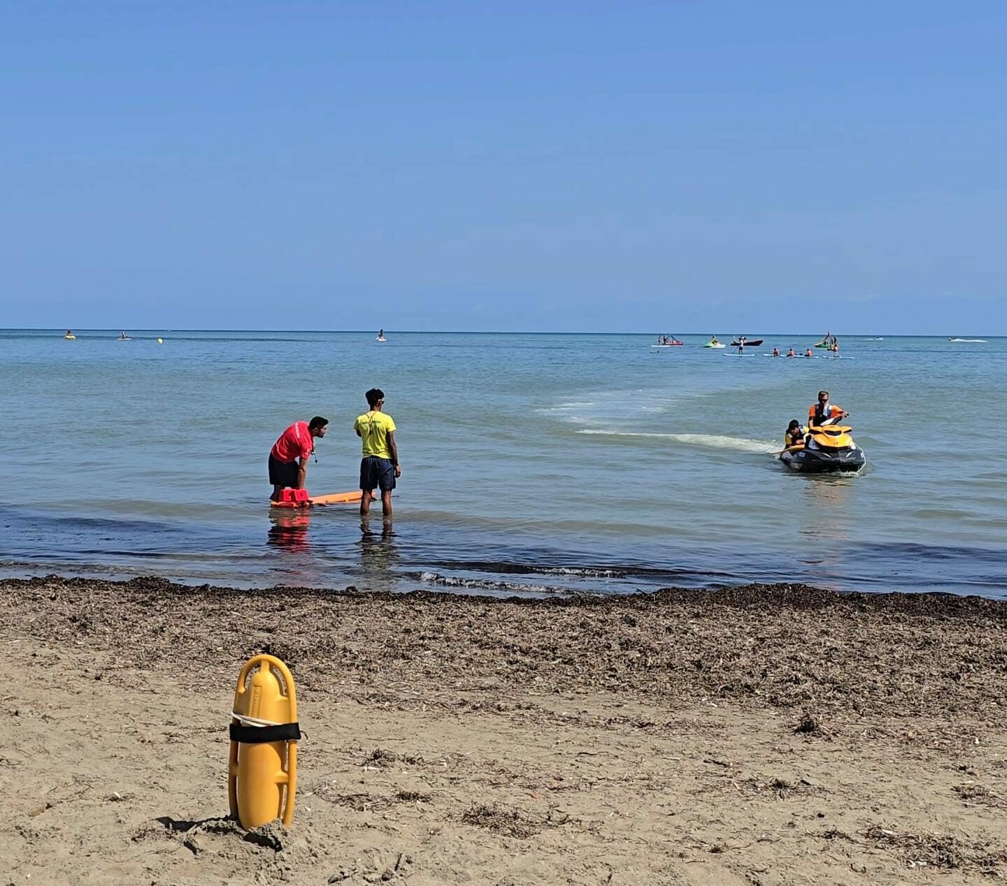 Es va realitzar la simulació d’un possible cas d’impacte d’una embarcació contra un banyista, a uns 200 m de la riba (fora de la zona de bany).