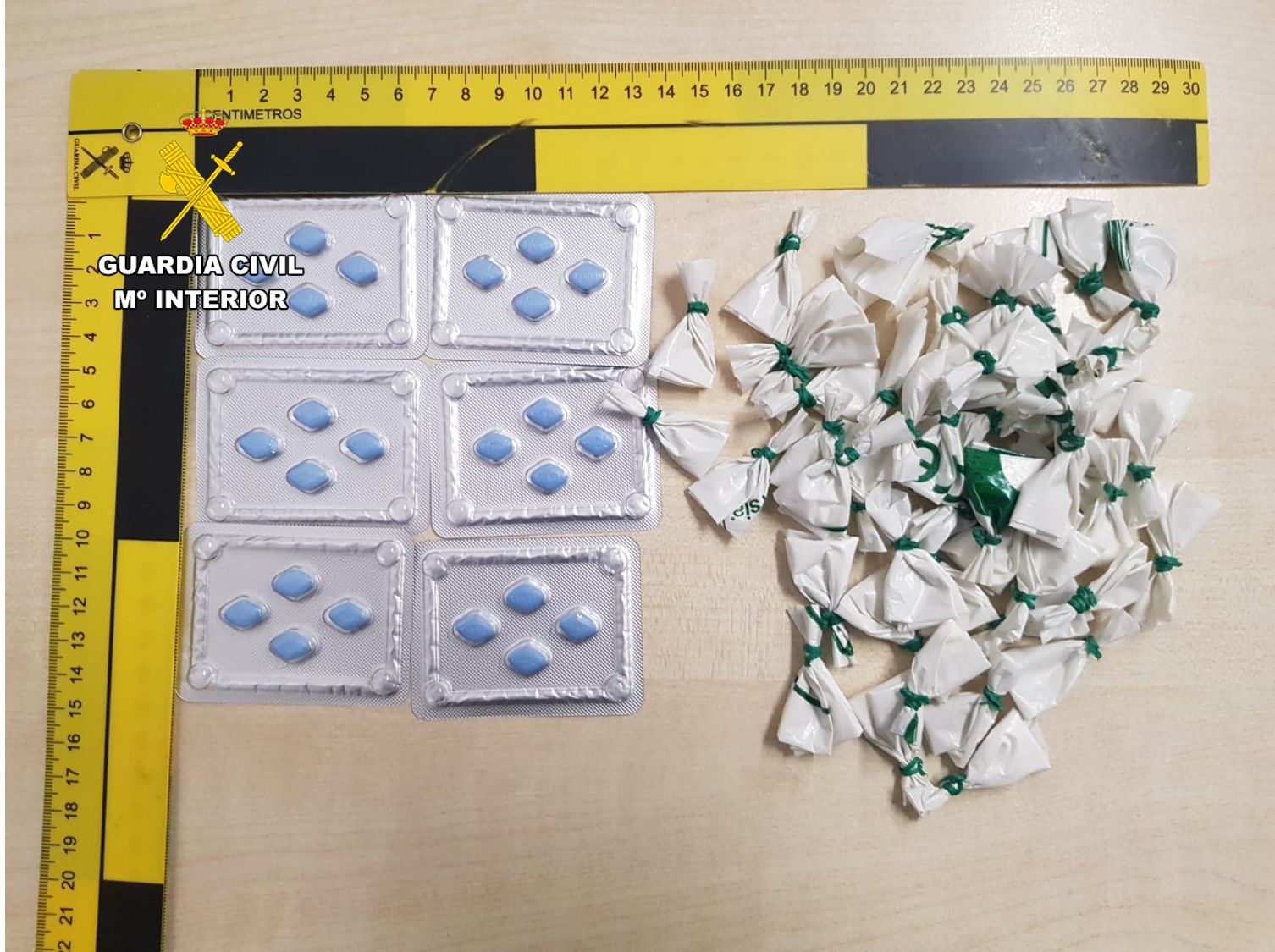 Davant l’actitud de les ocupants del vehicle, els agents van sospitar que podien ocultar alguna cosa, així que, després d’identificar-les, van decidir registrar l’interior del vehicle, trobant oculta sota un seient, una caixa en la qual portaven 48 dosis de cocaïna, llestes per a la distribució, i 24 pastilles de sildenafilo, un medicament indicat per a la disfunció erèctil en l’home, subjecte a prescripció mèdica i per a la dispensació del qual en la farmàcia, és necessària recepta. A més, els agents van intervindre 5.929 euros en efectiu i diversos telèfons mòbils.