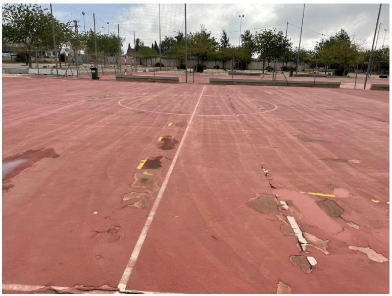 Actualment, les dues pistes esportives es troben en mal estat de conservació, amb un deteriorament significatiu dels paviments, dels tancaments perimetrals i de les xarxes de protecció. Segons la informació proporcionada per l’empresa que ha redactat el projecte de remodelació, s’han detectat desconxats en el tractament superficial, irregularitats, esquerdes, marcatge de les juntes d’asfalt, acumulació d’aigua per falta de pendent transversal i petits assentaments. L’aigua s’ha anat acumulant i filtrant per les esquerdes existents a causa de la manca de pendents adequats.