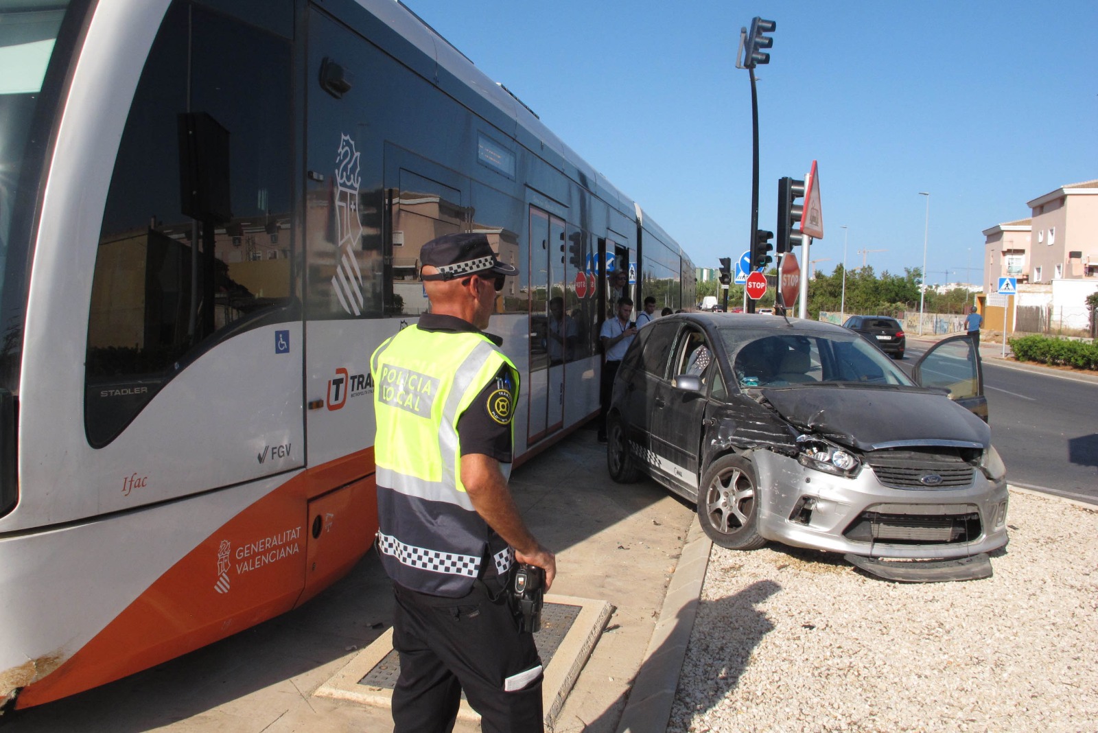 Sobre les 19.00 hores de la vesprada d’este dissabte, un cotxe ha col·lidit contra el TRAM en l’encreuament de l’avinguda Joan Fuster amb carrer Diana.