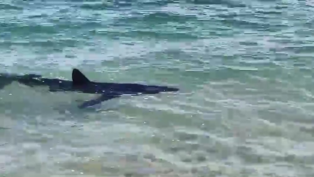 L’esqual s’ha apropat a la vora, causant gran curiositat i expectació entre els banyistes, que gaudien en eixos moments de la platja, però s’ha allunyat cap a mar obert.