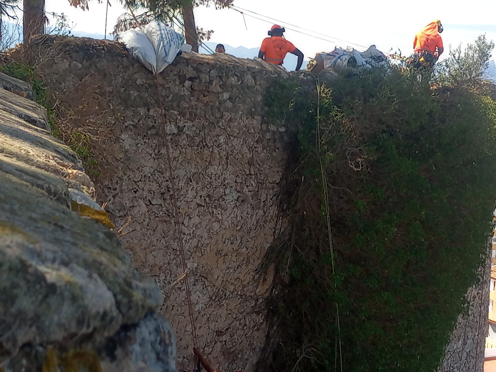 També s’està duent a terme durant esta setmana la neteja de les muralles de vegetació, per part d’una empresa especialitzada: cactus i enfiladisses.
