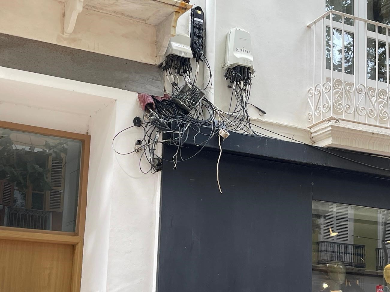 Bé, doncs aquesta mescla de carrer referent, turístic i emblemàtic, s’entremescla amb les caixes i cables, antiestètics i perillosos, que enlletgixen el nostre carrer principal, i el conjunt de les seues façanes.