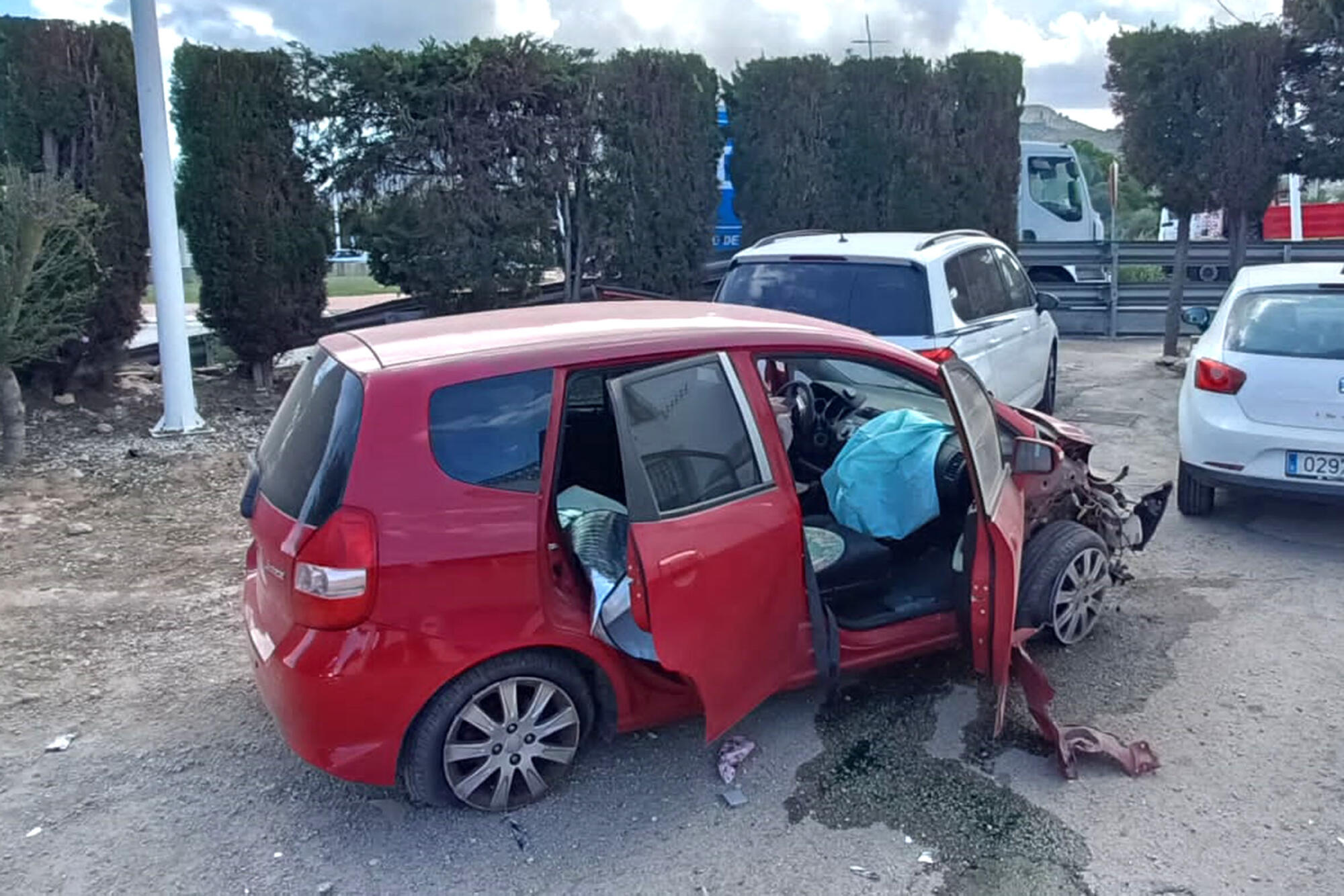 Pel que sembla, el vehicle en què viatjaven dues dones ha perdut el control en entrar a la rotonda, s’ha eixit de la via, saltant-se el voral i impactant contra un vehicle estacionat al costat de l’estanc.