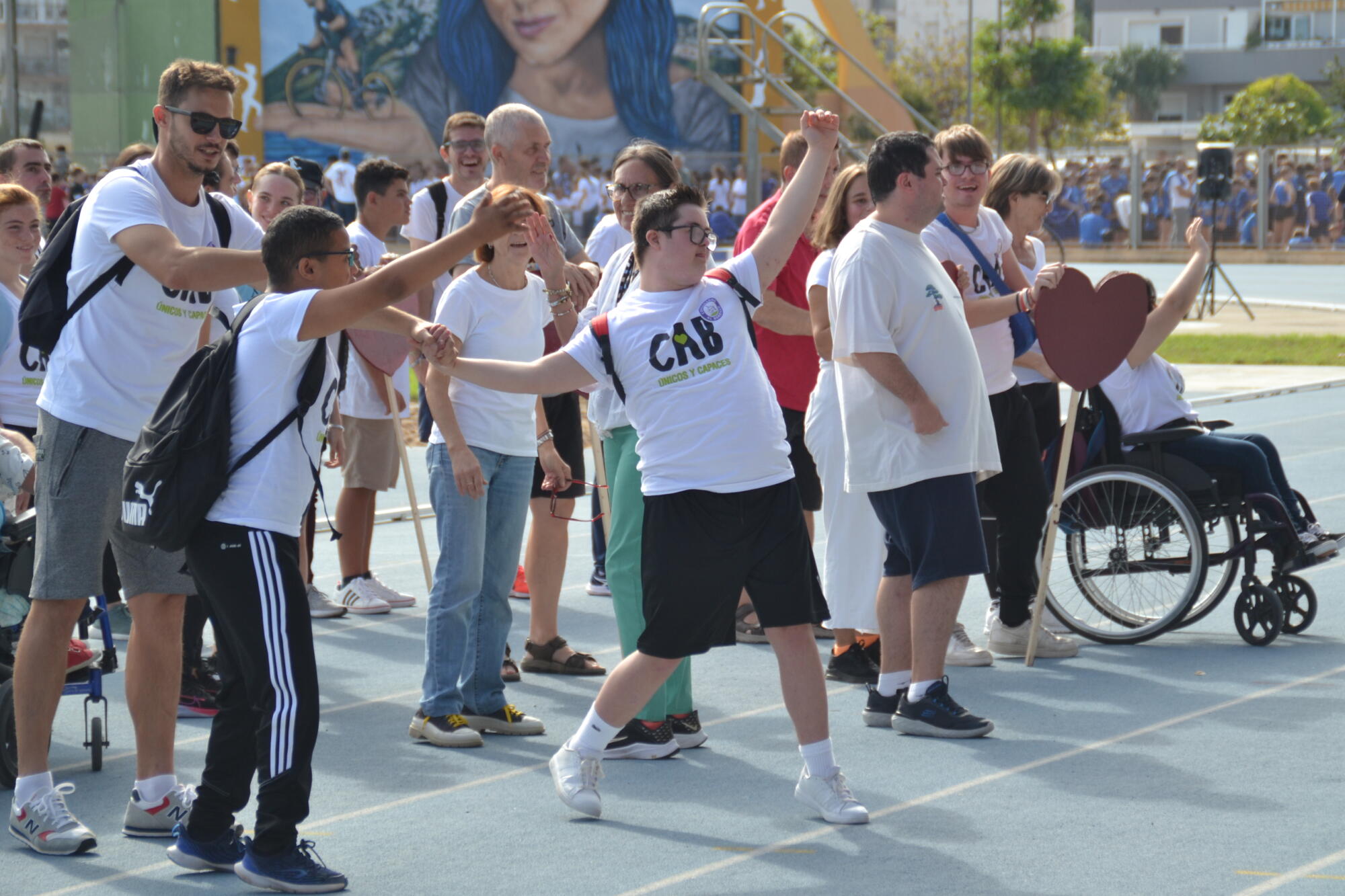 La desfilada de tots els esports es va iniciar amb els components de l’Escola d’Esport Adaptat, que es van portar l’ovació del matí. Van desbordar simpatia i van interactuar amb el públic, alçant-lo dels seus seients per fer una gran onada. Un a un, els alumnes de cada escola esportiva van desfilar davant de la tribuna, recollint els aplaudiments de tots els presents.