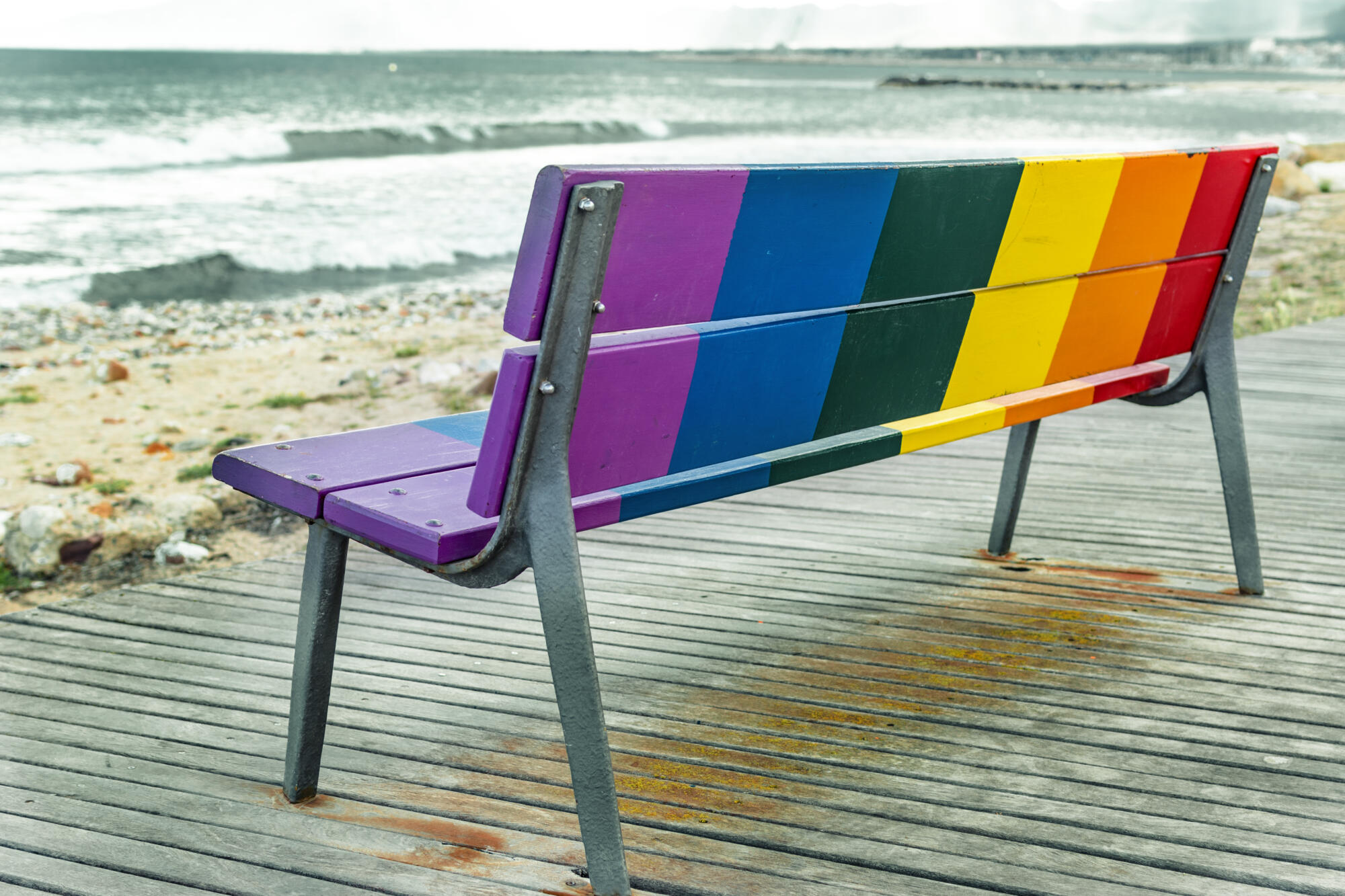 Imatge d'un banc amb els colors de la bandera de la comunitat LGTBI / armacuatro (Envato)