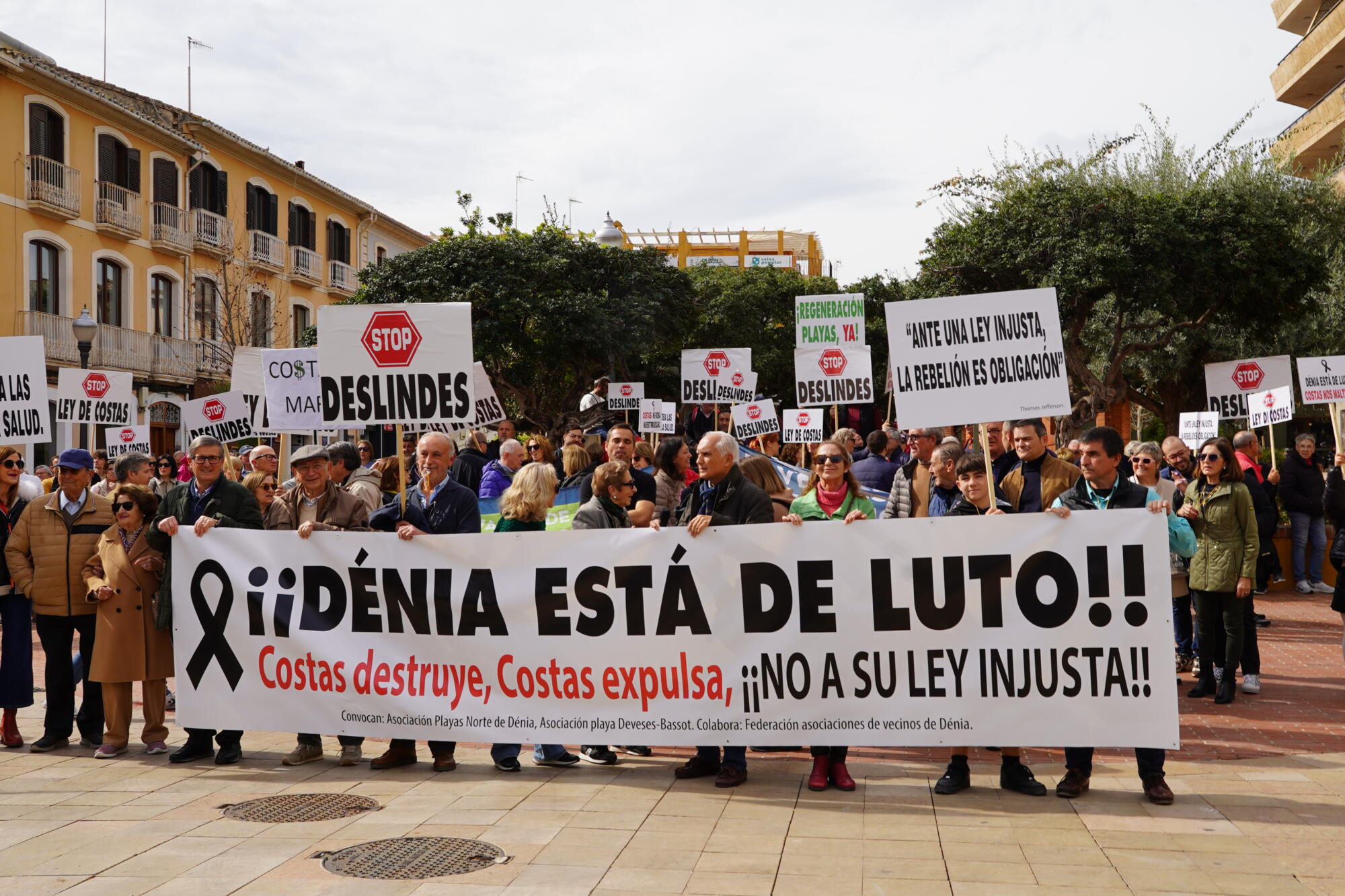 Després de la pancarta central amb el lema «Dénia està de dol«, els organitzadors i portaveus de les diferents associacions han encapçalat als protestants que anaven equipats amb pancartes, xiulets i cartells. Entre els missatges més cridaners; «Davant una llei injusta, la rebel·lió és obligació«, segurament la frase més sonada entre els assistents, encara que també missatges més conciliadors com «Sí a la regeneració de platges, no a les partions de la costa«.